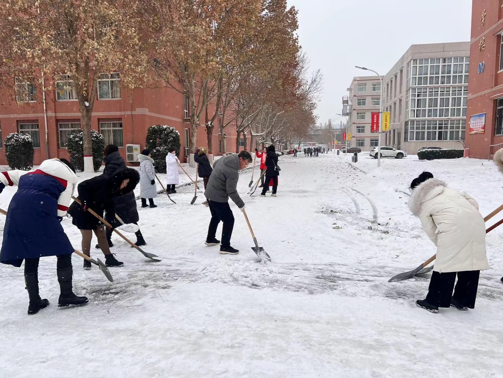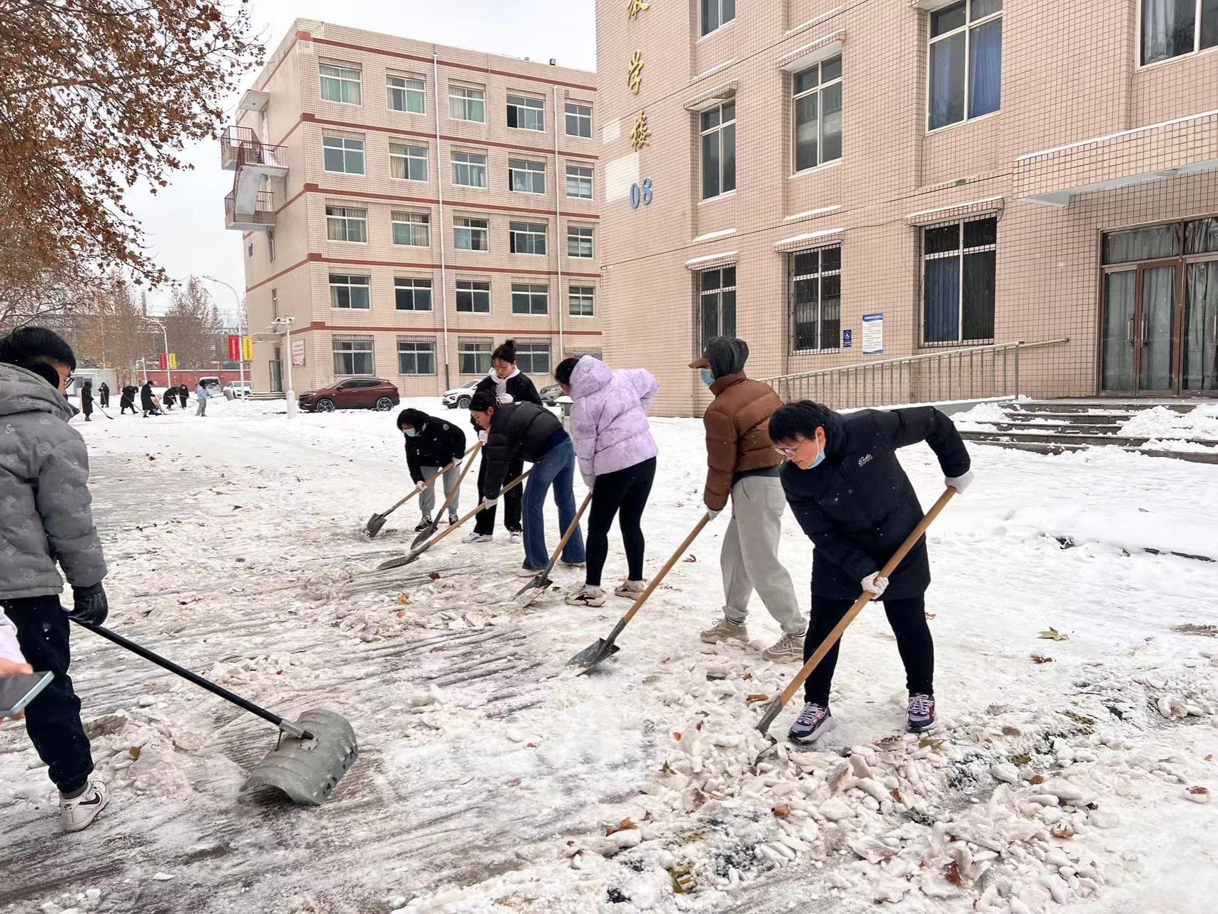瑞雪兆丰年,校园裹银装。为保障校园内道路顺畅通行和师生安全,12月15日,万象城官网组织全体行政人员开展清雪除冰活动。