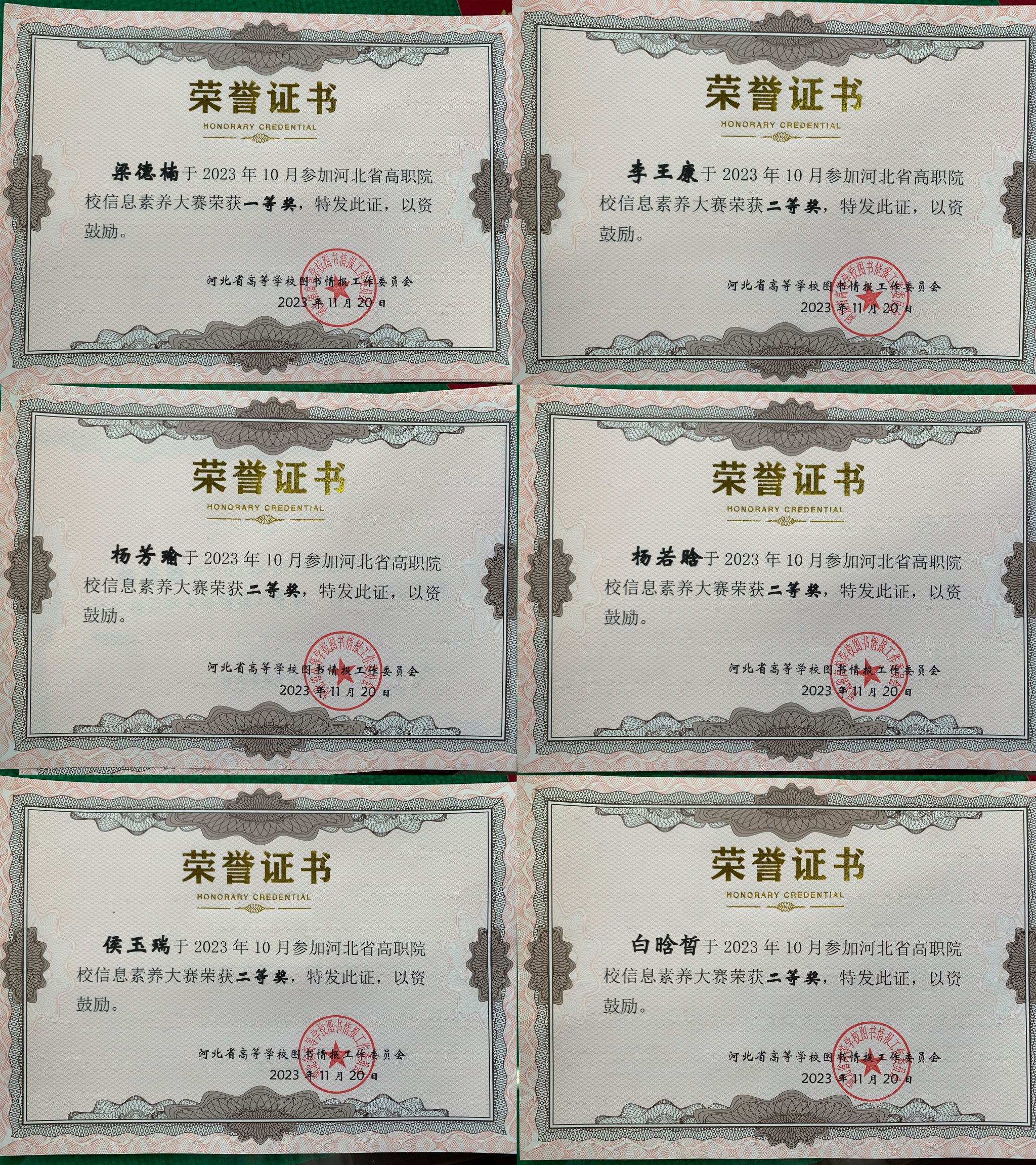 本次大赛分为省选拔赛和全国赛两个阶段,万象城官网图书馆认真组织、精心培训,遴选出2名教师和115名学生参加河北省选拔赛,其中,在教师微课赛中,基础部郑美玲老师的微课荣获二等奖并入围国赛,基础部姜炳正老师的微课荣获三等奖;在学生个人赛中,经过客观题和主观题的较量,最终梁德楠荣获一等奖,李王康、杨芳瑜、杨若晗、侯玉瑞和白晗皙荣获二等奖,骆瑶等17名老师被评为“优秀指导教师”,学校获“最佳组织奖”。