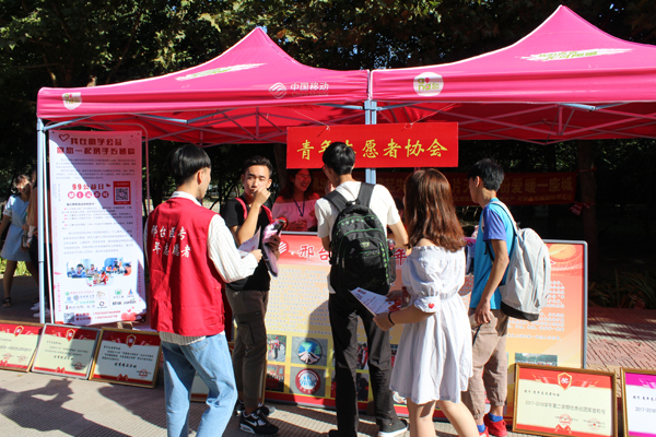 邢台国际自行车大赛青年志愿者“邢小牛”也现身校园参与迎新了,这些青年志愿者协会会员身穿“邢小牛”卡通服装,时而张开双臂,时而跳跃着,迎接远道而来的客人,形象活泼可爱。轮滑社的成员拿出看家的本领,精彩的花式轮滑吸引着新生们的目光;大学生艺术团更是吸引新生眼球,吹拉弹唱全都上,给人一种十足的文艺范,路过的新生无不驻足观看。青年志愿者协会宣传站摆满了各种奖状和奖杯,这些都是青年志愿者们参加志愿活动时所获得的荣誉,每一项荣誉都有他们汗水的付出,都体现了他们为了中国梦而打拼的精神所在,他们的事迹感动着每一位新生及其家长。扁鹊医学社、新月读书社、岐黄学社、新青年求知学社、英语协会等社团的成员们给新生们分享读书体会、学习方法,更是吸引了许多阅读、学习爱好者加入。 新生们纷纷表示,十分想成为社团的一员,通过社团活动开阔眼界、提升能力、完善自我、结交朋友、丰富校园生活。