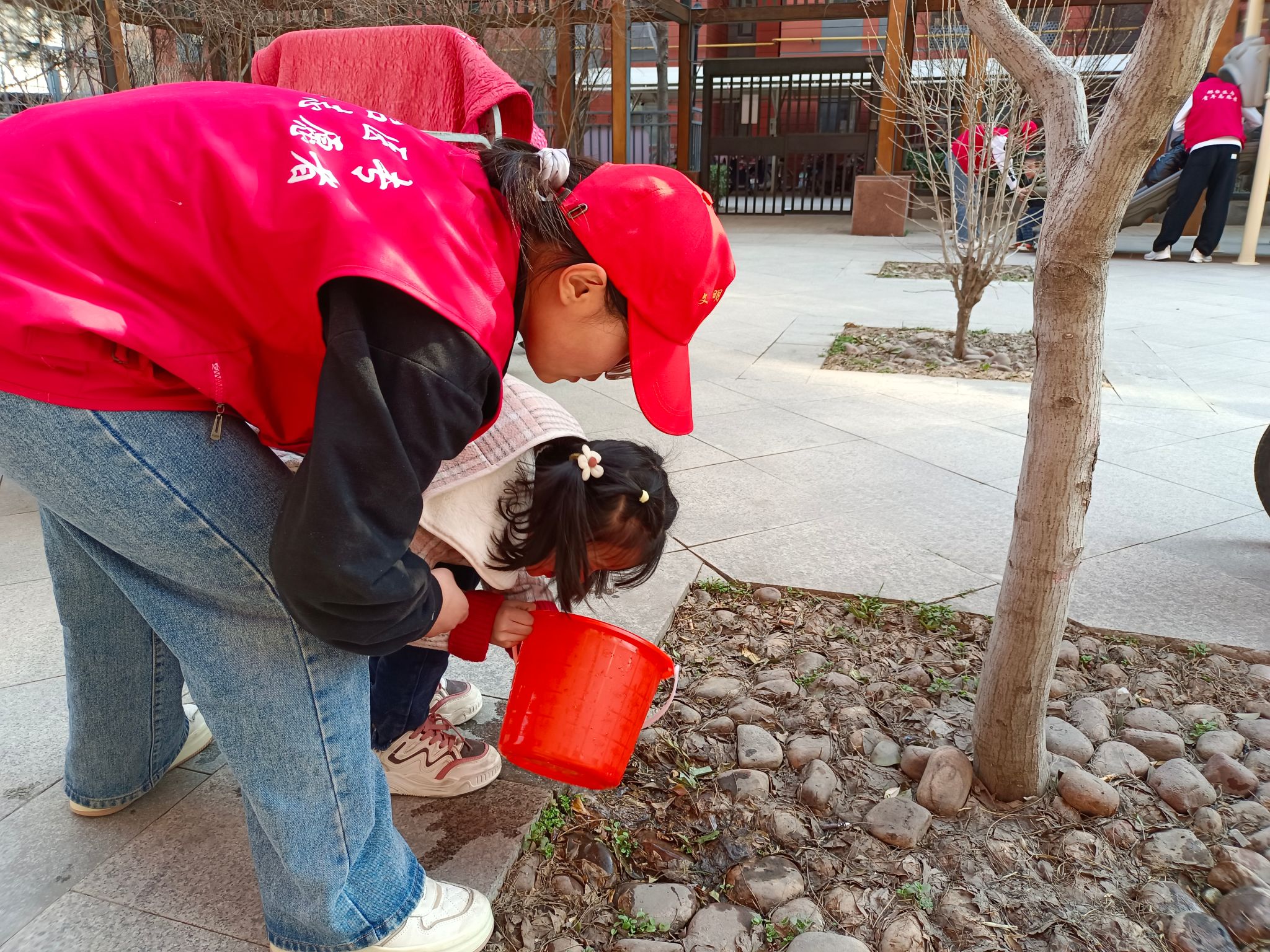 活动中,志愿者积极与孩子们互动交流,和他们一起玩翻山越岭、篮球消消乐、捉迷藏等趣味游戏,现场一片欢声笑语;正值第46个中国植树节之际,志愿者还和孩子们一起为院区内的树木浇水,用爱心沁润绿色、灌溉未来。