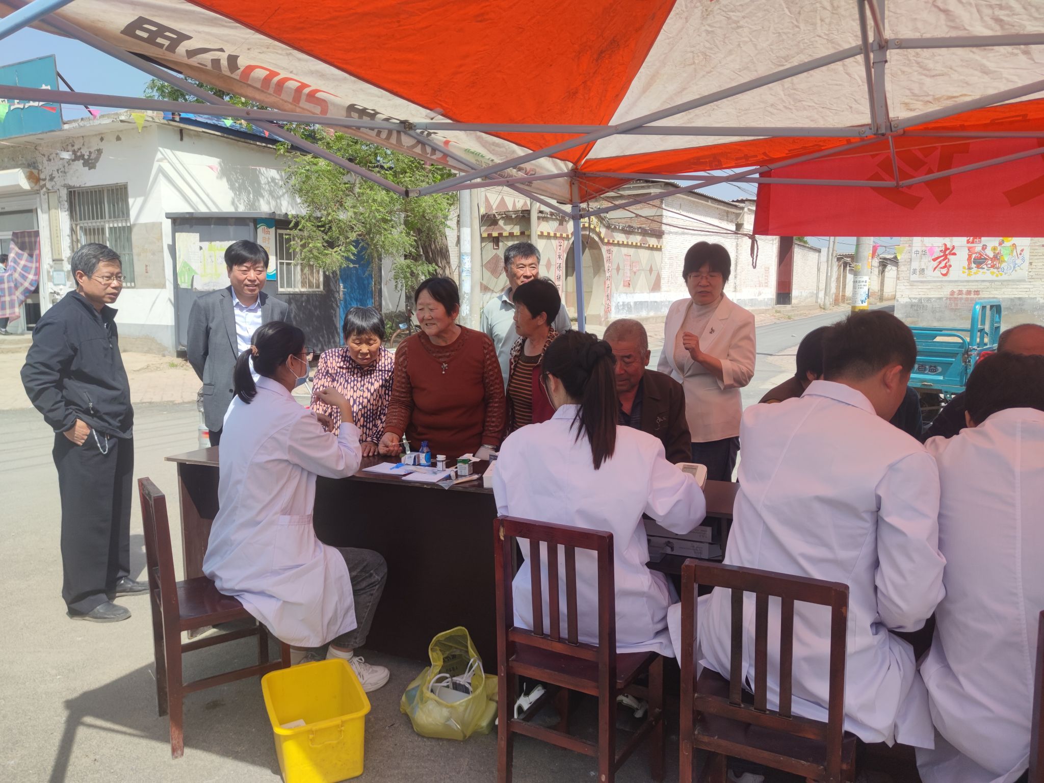 4月25日上午,万象城官网赴南宫市东唐苏村开展健康义诊,学校党委书记、校长李建广在调研指导驻村帮扶工作时对义诊工作进行现场指导。