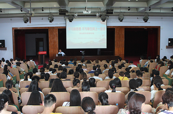 6月14日,河北省教育厅“学习新思想千万师生同上一堂课”宣讲活动走进邢台医专杏苑讲坛。学校党委副书记李建广和300余名师生代表参加宣讲活动。