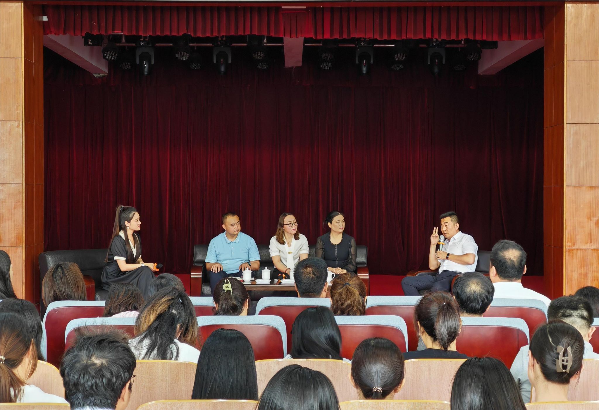 互动环节,同学们围绕职业生涯规划、创业方向选择等问题踊跃提问,4位青年企业家热情地为同学们答疑解惑,提出指导性建议,同时鼓励同学们努力提升综合素质和实践能力,为未来的职业发展奠定坚实基础。