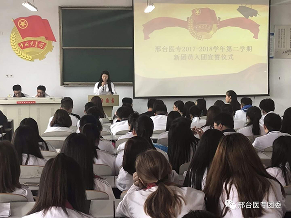 为增强新团员的光荣感和使命感,4月19日中午,团委在 2017级普影1班举办了邢台医专2017-2018学年第二学期新生入团仪式。