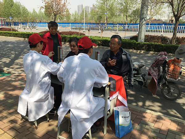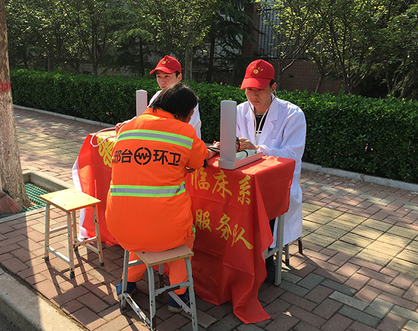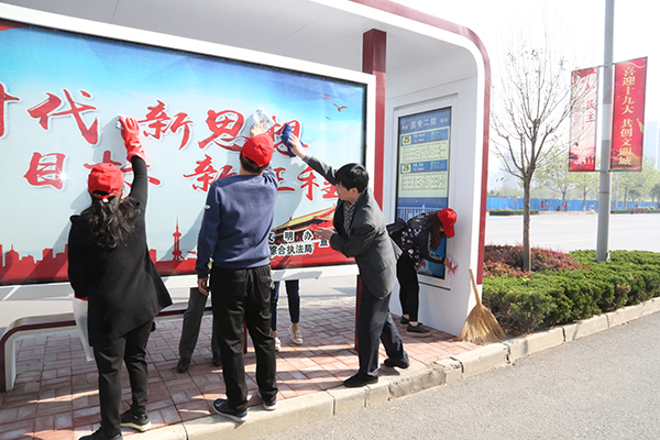 经过简单区域划分,大家立即行动起来,迅速投入工作。活动中,大家清扫路面积水、垃圾,捡拾绿化带果皮壳、烟头纸屑、枯枝落叶,擦拭垃圾箱、路灯杆、公交站亭、路名牌、交通标志等公共设施,对乱涂乱画及小广告进行彻底清理。中医系、临床系党总支设立义诊服务台,为行人免费测血压、中医诊脉、用药指导,向广大群众普及医学常识和健康知识,倡导健康生活方式。机关党总支八名教师身披“创建文明城市 争做文明使者”绶带在钢铁北路与泉北大街交叉口开展文明交通劝导,向行人宣传交通法律知识和交通法规,增强市民交通出行的法制意识、安全意识、文明意识。药学系党总支积极劝导占道经营的小摊小贩,向其耐心细致讲解创城知识。志愿者们发扬不怕脏、不怕累、不怕麻烦的精神,个个干劲儿十足,现场热火朝天。