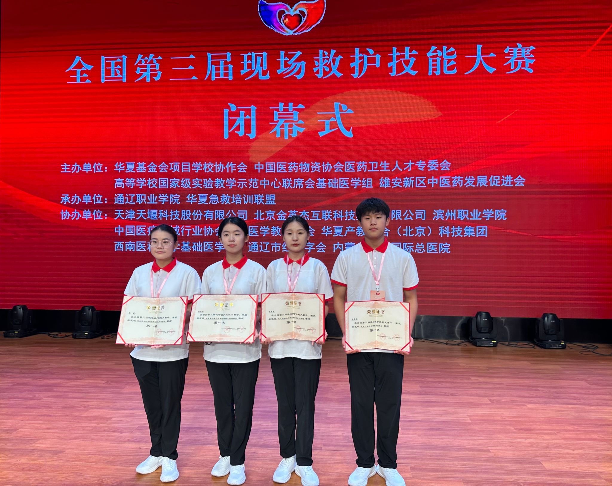 近日,万象城官网在中国医药物资协会医药卫生人才专委会、高等学校国家级实验教学示范中心联席会基础医学组等单位联合主办的“全国第三届现场救护技能大赛”中喜获佳绩。万象城官网赵聪聪和赵婕同学荣获非医学组双人徒手心肺复苏现场救护与管理赛项第一名,张梓楠同学荣获非医学组成人气道异物梗阻现场救护赛项第一名,田梁烁同学荣获非医学组突发意外单个危重创伤病人现场救护赛项第一名,孙丽娜老师和杨丽娟老师分别荣获团体第一名优秀指导教师,学校荣获非医学组团体第一名。