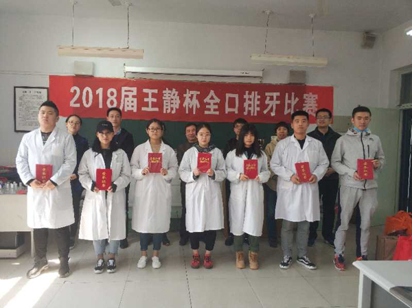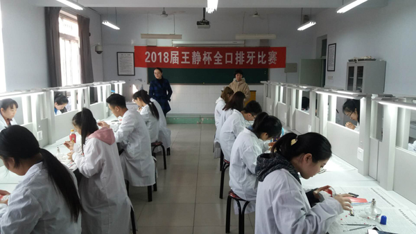 为加强学生的实践动手能力,培养学生对专业课程的学习兴趣,3月24日上午,口腔医学系举办了2018届王静杯口腔全口排牙比赛。经过初赛选拔后,共36名学生参加复赛,在3个半小时内完成全口义齿的排列和牙龈形态的雕刻。评委从牙弓大小及对称性、前后牙的咬合紧密、牙龈雕刻形态等情况综合评价打分。经过激烈的角逐,最终2016级口腔1班的牟宁同学获得一等奖。