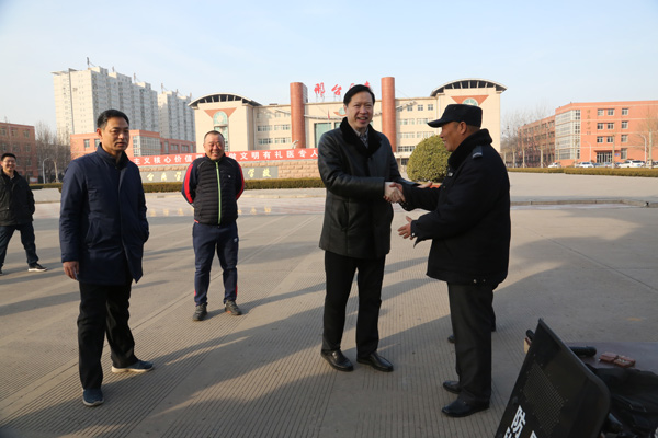 声声祝福寄深情,亲切慰问送关怀。农历大年30上午,在新春佳节即将来临之际,学校领导田德荣、李建广、杜成旭、王晓明、李朝鹏、张志强分别看望了坚守在校本部、南校区、皇寺校区工作岗位上的干部职工,向他们送去节日的祝福和亲切的慰问。