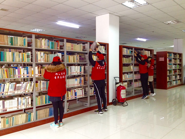 另一路学雷锋志愿服务小分队的14名大学生志愿者到邢台市图书馆,在图书馆工作人员的带领下,开展了整理上架书籍工作。由于周末借书的、还书的人很多,工作人员的工作量很大,很多刚刚归还的书籍还来不及按类别放到书架上,同学们进屋就开始整理、分类、上架,阅览室里随处可以看到忙碌不已却依然脚步不停的同学,认真、踏实、肯干的工作态度得到了图书馆老师和读者们的肯定和赞赏。来自廊坊的2017级普药班的秦雯炎同学满头大汗的说道:“赠人玫瑰,手有余香,作为一名新时代的大学生,能为社会贡献自己微薄的一份力,在奉献爱心的同时,得到了锻炼,增长了见识,我也感到十分荣幸和满足,志愿服务是我义不容辞的责任。”