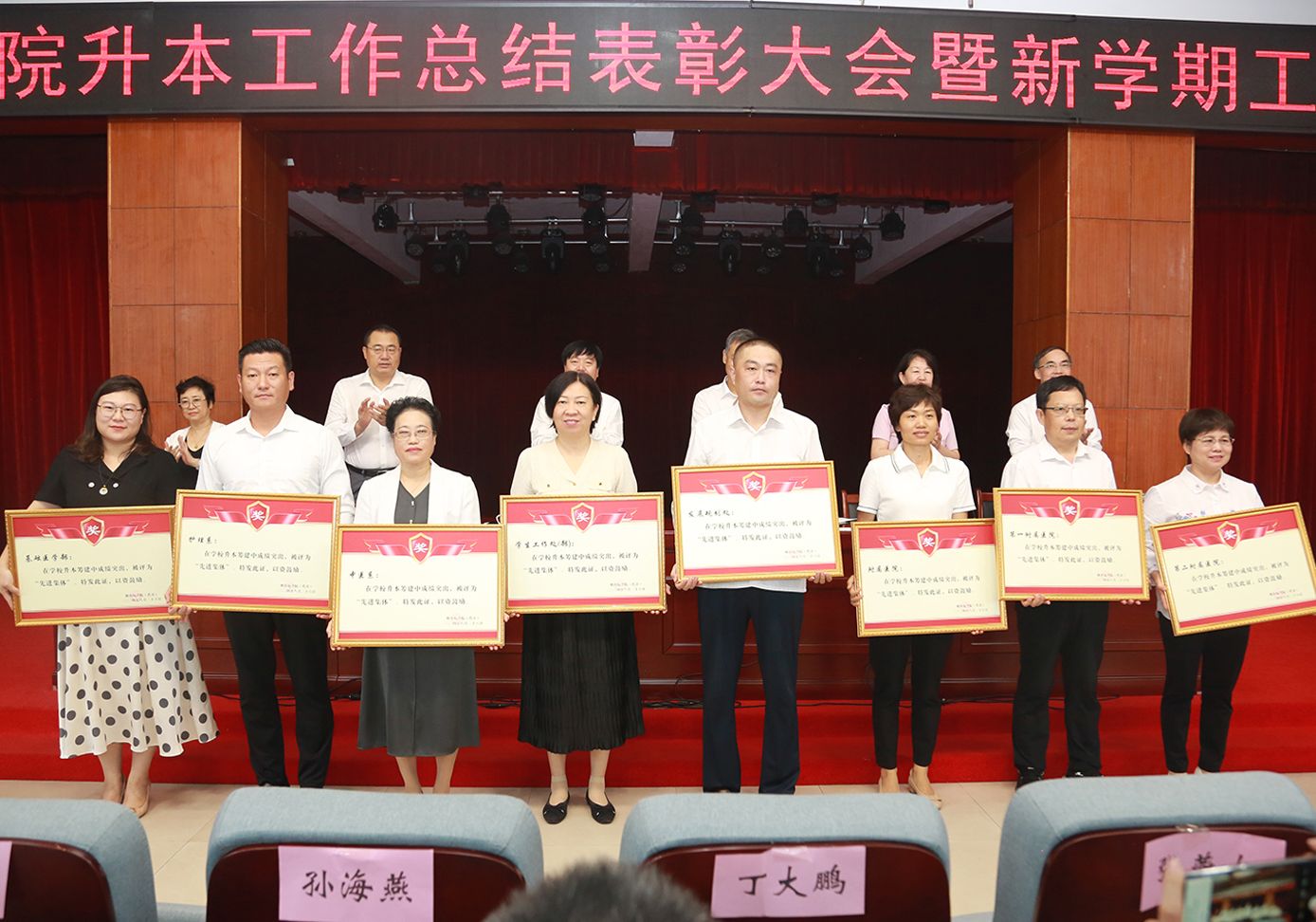 学校领导为“先进集体”代表、“优秀个人”代表和“先进个人”代表颁发了奖匾和证书。