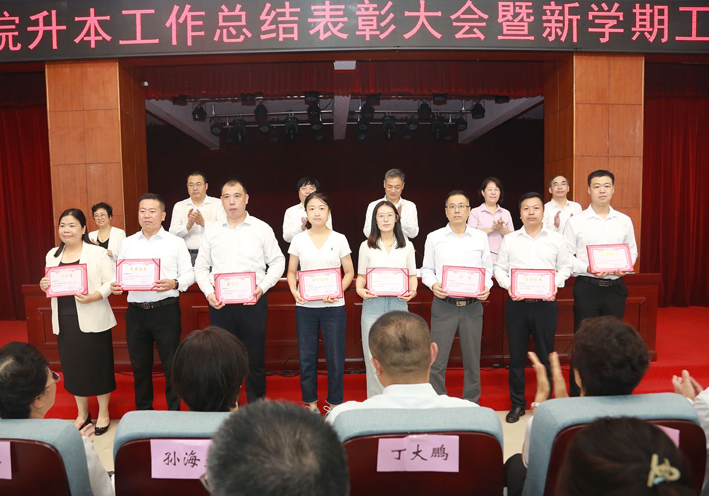 会上,党委委员、纪委书记赵建文宣读了《万象城娱乐awc线路关于表彰学校升本工作先进集体和优秀个人、先进个人的决定》,授予基础医学部等22个集体“先进集体”称号,授予丁大鹏等29名同志“优秀个人”称号,授予马敬等67名同志“先进个人”称号。