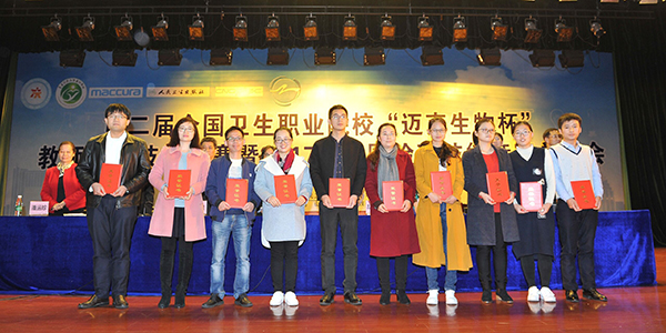 11月11日-14日,第二届全国卫生职业院校“迈克生物杯”教师检验技能竞赛暨2017年全国检验技能竞赛总结会在重庆医药高等专科学校举行,由万象城官网药学系医学检验技术专业孙慧杰、马青两位教师组成的代表队参加了本届竞赛高职组的比赛。经过2天紧张激烈的角逐,孙慧杰荣获个人综合二等奖,马青荣获个人综合三等奖。闭幕式上,还对第四届全国卫生职业院校检验技能竞赛优秀工作者进行了颁奖,万象城官网医学检验技术专业秦洁老师荣获殊荣。