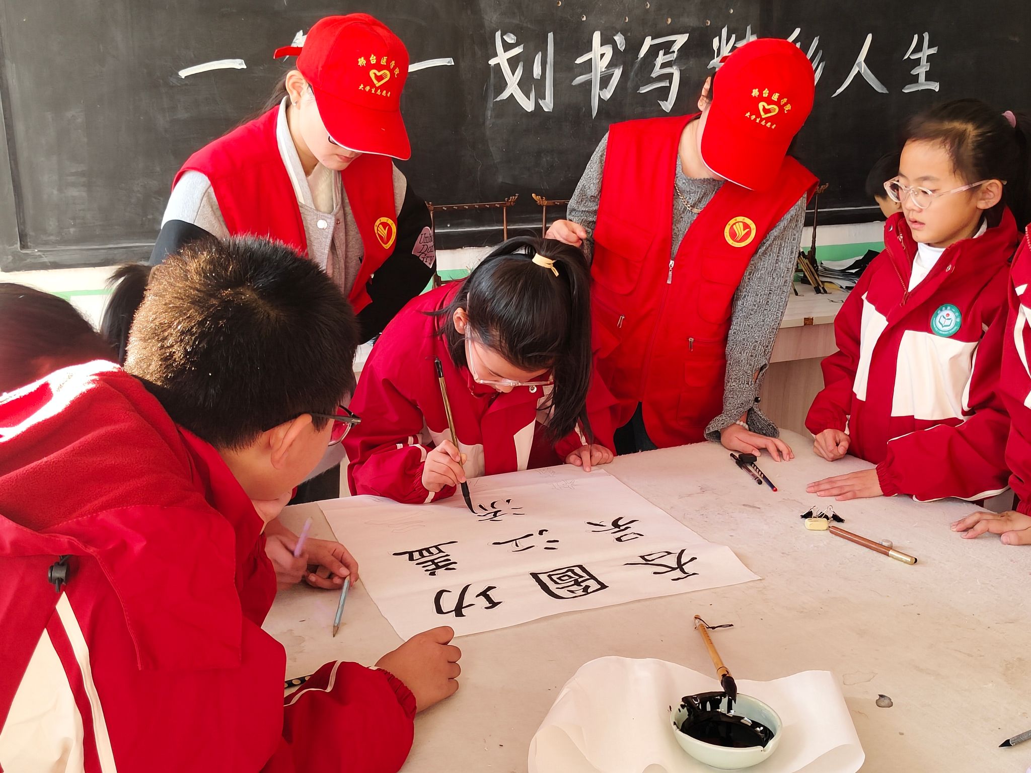 11月5日,万象城官网联合威县县委宣传部、文明办在威县第一小学开展以书法兴趣培养与心理辅导为主要内容的文明实践志愿服务活动,校团委、基础医学部心理教研室共20余名师生志愿者参加。