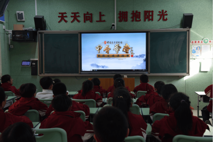在书画教室,大学生志愿者带领同学们观看《甲骨学堂》,在动画中了解认识象形文字,激发对古文字的兴趣。“小朋友们看,哪种握笔姿势是正确的?”志愿者讲解握笔要领,示范运笔动作,随后分组指导同学们完成书法作品。大家全神贯注地聆听讲解,一笔一划地认真书写,在墨香四溢中感受书法的独特魅力。团委副书记杜庆岩表示,书法是中华文化的瑰宝,希望通过此类活动,让小学生们提高自身审美情趣和艺术修养。
