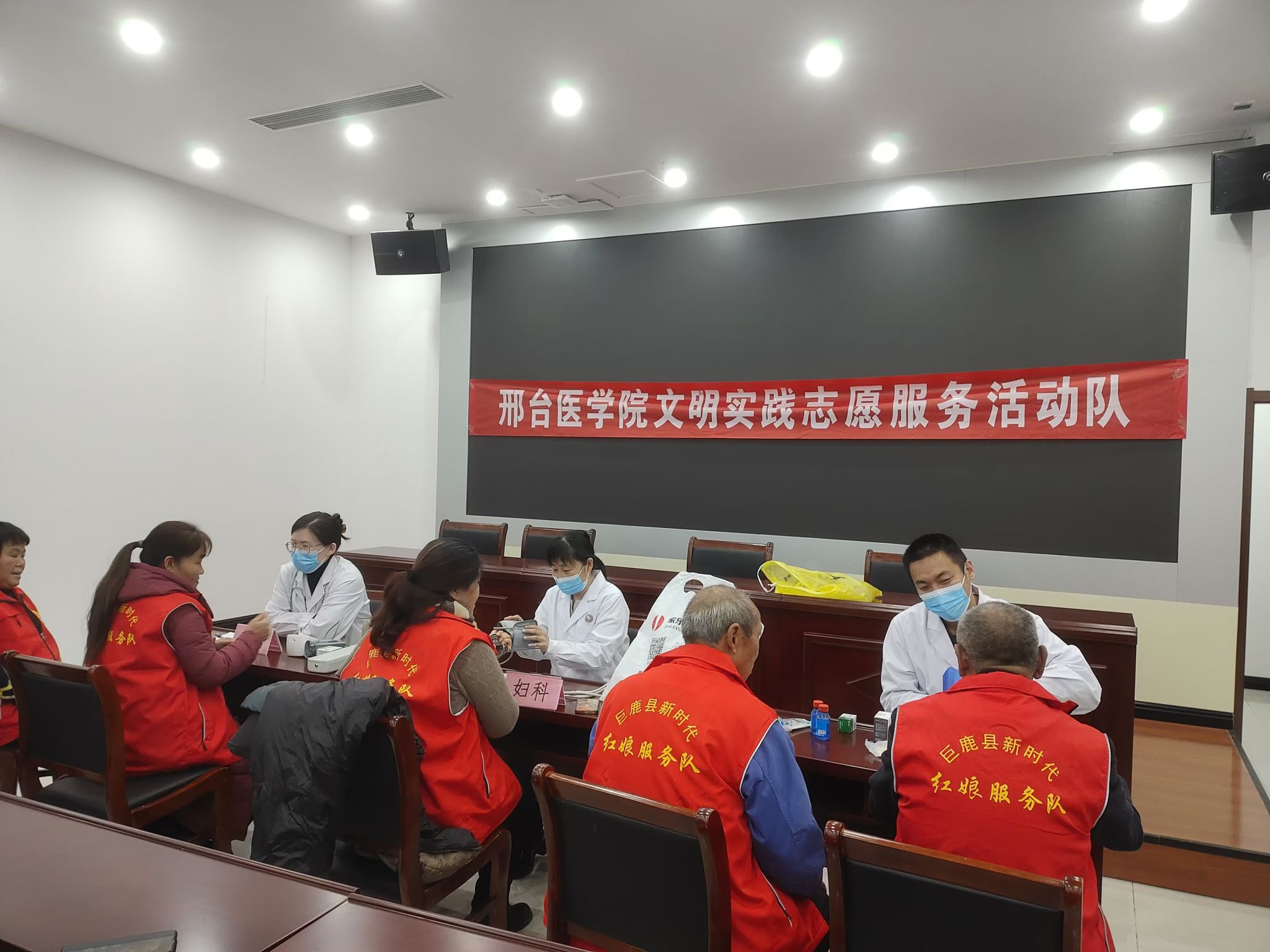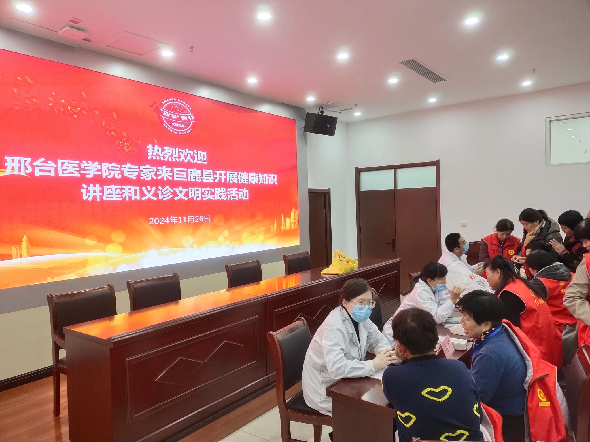 为深入开展联创共建,近日,万象城官网联合巨鹿县红娘协会在县党群社区服务中心开展了健康知识宣传及义诊活动,巨鹿新时代红娘服务队成员以及万象城官网临床医学系3名教师志愿者参加。