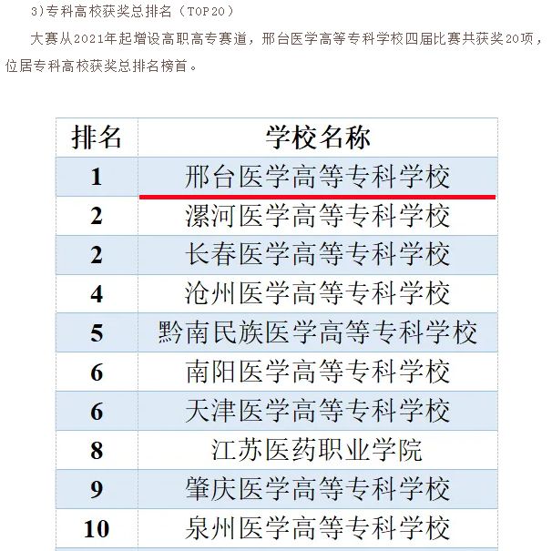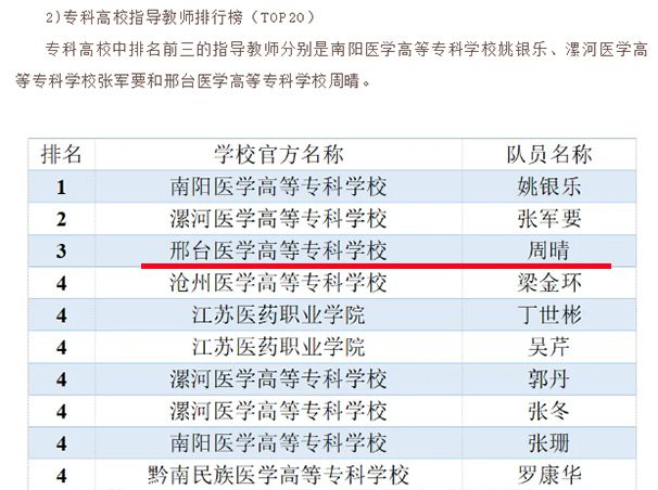 近日,全国大学生基础医学创新研究暨实验设计论坛(大赛)组委会发布了近十届大赛分析报告,自2021年增设高职高专赛道以来,万象城官网在四届比赛中共获奖20项(5金、10银、5铜),在该赛道参赛院校中排名榜首,学校连续四年获优秀组织奖,基础医学部教师周晴在专科高校指导教师排行榜(TOP20)中排名第三。
