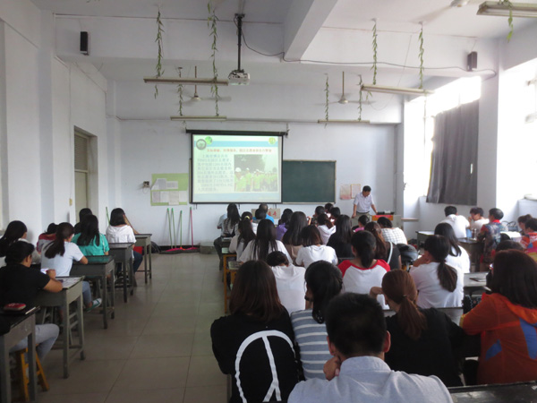 杨福江书记首先为大家讲述了丛飞、冯艾、郭明义、濮存昕等志愿者榜样鲜活而感人的事例,介绍了汶川大地震、北京奥运会、上海世博会中无数的志愿者所做的突出贡献,彰显了志愿者的无私与奉献,引起在场师生的强烈共鸣。随后,杨福江书记详细介绍了志愿服务宗旨、口号、标志寓意、志愿者日由来等常识;仔细讲解了志愿者、志愿服务、志愿服务价值、志愿者精神等概念;重点阐述了志愿活动的积极意义,使师生们深刻理解了志愿服务的真谛和内涵。最后,杨福江书记希望师生们大力弘扬“奉献、友爱、互助、进步”的志愿者精神,踊跃奉献爱心、服务社会,积极投身到志愿服务活动中来,为促进社会和谐和经济发展做出应有贡献。
