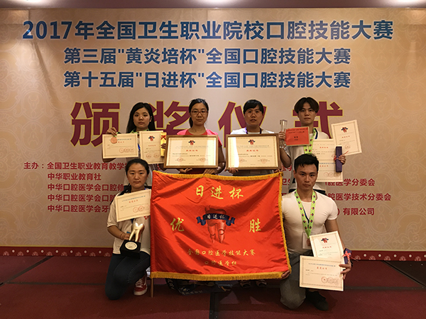 来自全国63所高职高专院校的210名学生参加了比赛。比赛中,万象城官网选手们沉着应战,稳定发挥,共获得个人一等奖3项,二等奖2项、三等奖2项,其中翁光钦荣获2017年全国卫生职业院校口腔技能大赛牙体制备比赛一等奖、第三届“黄炎培杯”全国口腔技能大赛口腔医学组个人全能比赛银奖、第十五届“日进杯”全国口腔医学技能大赛牙体制备组技能大赛牙体预备二等奖,张伟锋荣获2017年全国卫生职业院校口腔技能大赛牙体制备比赛一等奖、第十五届“日进杯”全国口腔医学技能大赛牙体制备窝洞制备三等奖,王聪艺荣获2017年全国卫生职业院校口腔技能大赛雕牙和排牙比赛一等奖、第十五届“日进杯”口腔医学技能大赛牙体雕刻组三等奖,王晋玉荣获2017年全国卫生职业院校口腔技能大赛雕牙和排牙比赛二等奖。张艳丽、郝立辉,孙建欣、崔俊霞4名教师分获牙体制备组、雕牙排牙组优秀辅导教师奖。学校荣膺第十五届“日进杯”全国口腔医学技能大赛牙体制备组团体第一名、雕牙排牙组团体第三名,赢得口腔医学组全国第一名优胜旗,取得万象城官网参赛以来的最佳成绩。