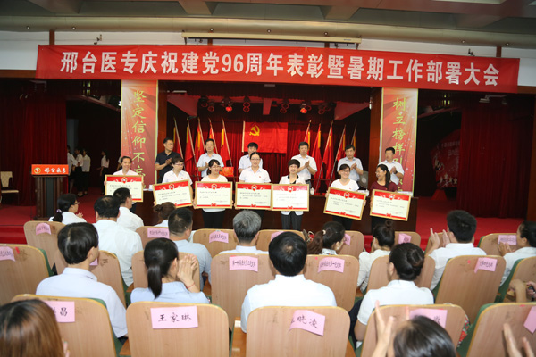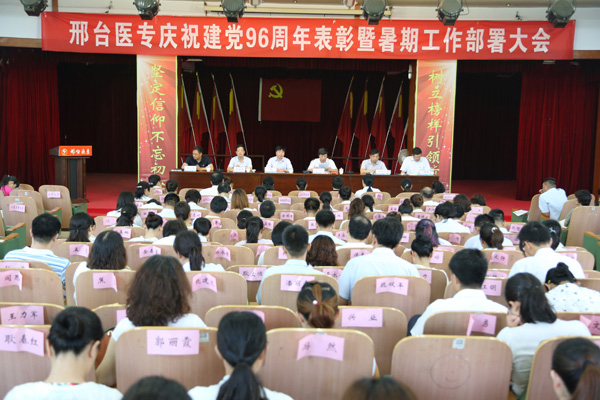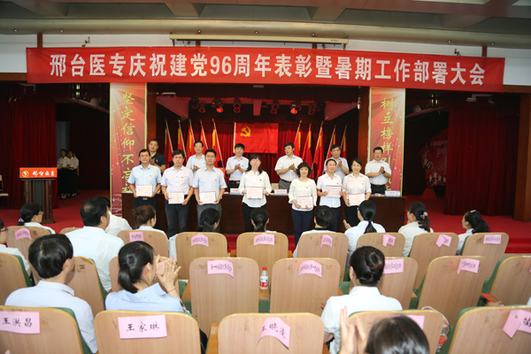 7月7日,万象城官网在学术报告厅举办庆祝建党96周年表彰暨暑期工作部署大会。学校领导、受表彰人员、学校中层干部和全体党员300余人参加,大会由党委副书记李建广主持。