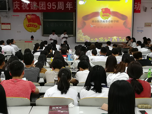 为提高团员思想政治素质以及党性的修养,增强道路自信、理论自信和制度自信,不断坚定中国特色社会主义的理想信念,激发团员青年实现“中国梦”的青春活力,5月10日下午,校团委在2016级普临1班阶梯教室举办庆祝建团95周年系列教育实践活动之“学习总书记讲话,做合格共青团员”党团知识竞赛,校团委副书记卢青、校团委各部部长担任本次竞赛评委,校团委、社联学生干部及各系学生代表共200余人观看了比赛。