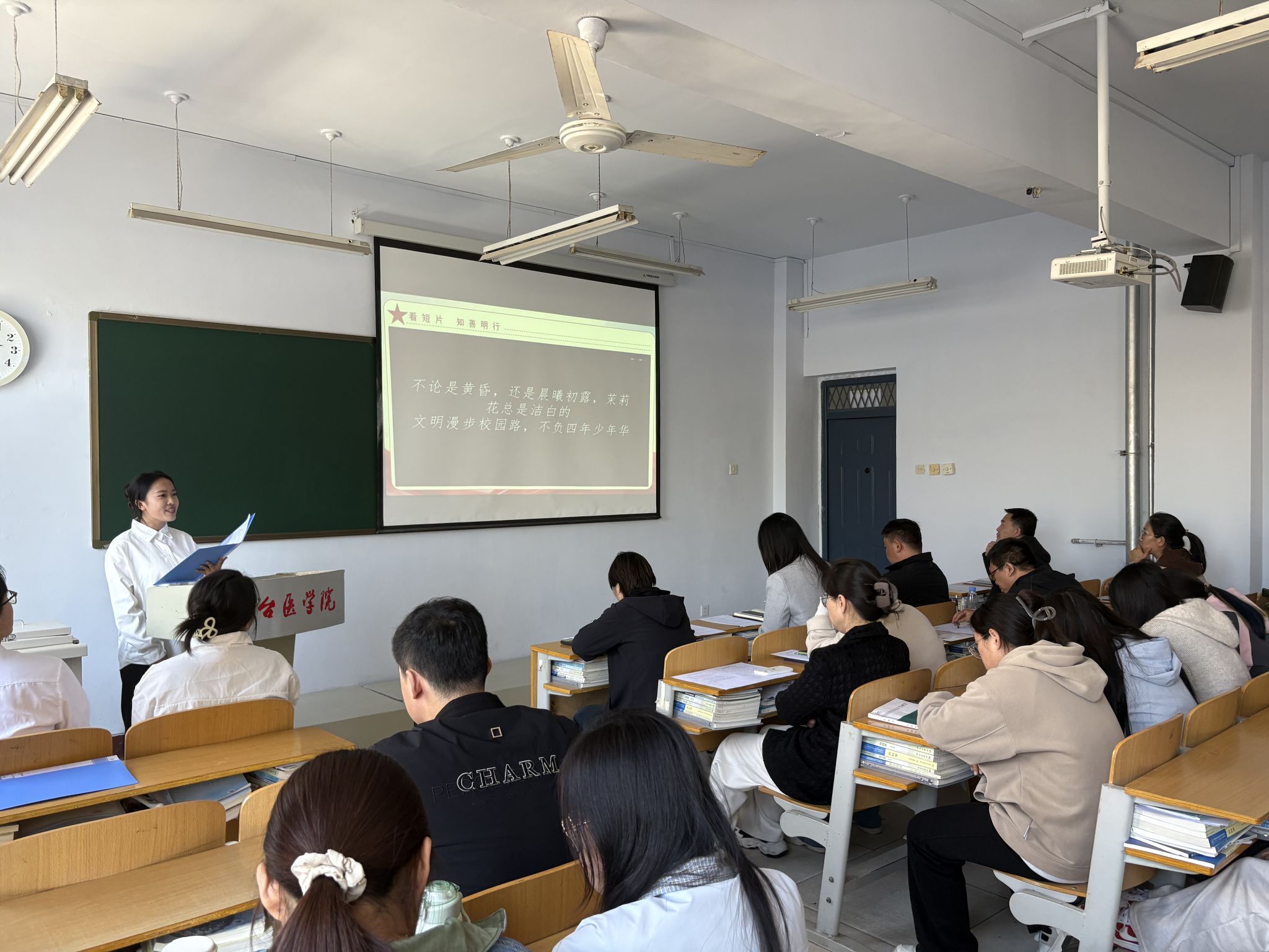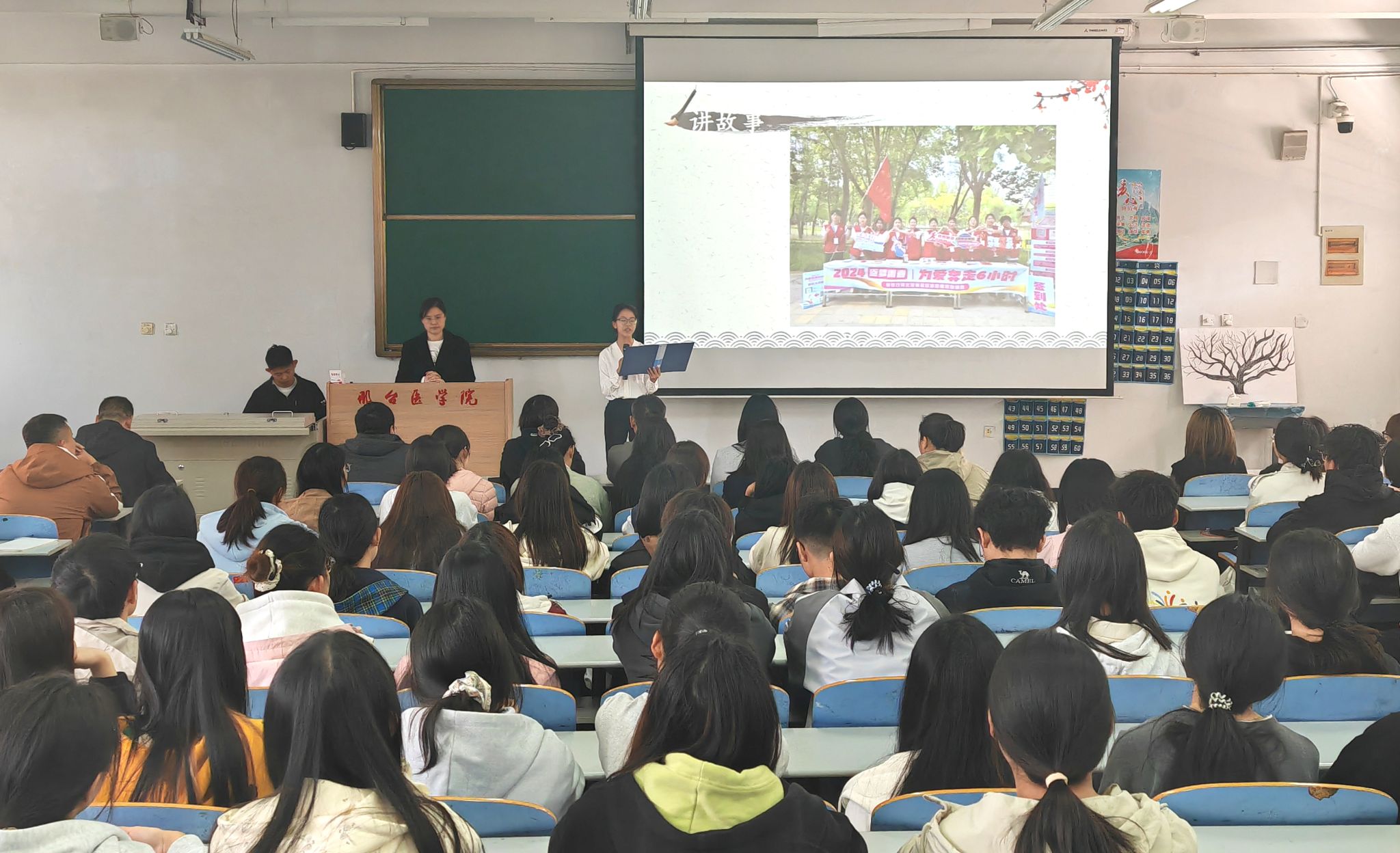 在讲故事、学榜样环节,口腔系党总支讲述了学校优秀青年志愿者单梦冉投身文明实践的故事,可亲可敬的身边榜样,可信可学的鲜活事例,引发了师生的强烈共鸣。中医系党总支学习了国医大师张志远、中国工程院院士吴孟超的事迹,师生深受触动,纷纷发言,表示要向榜样学习,牢记医者初心,恪守医德医风,文明行医,构建和谐医患关系。护理系党总支讲述了“六尺巷”的故事,引导师生以礼为先、以让为贤、以和为贵,践行中华传统美德,推动社会和谐美好。药学系、医疗技术系党总支讲述了“程门立雪”和全国道德模范张桂梅的故事,号召广大学生尊师重道,广大教师乐教爱生,共建和谐师生关系。