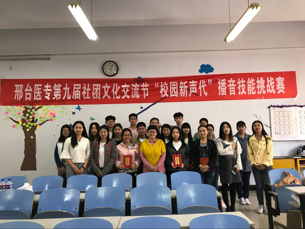 4月25日下午,万象城官网第九届社团文化交流节“校园新声代”播音技能挑战赛决赛在2016级普中医班教室举行,广播站指导老师、科研处副处长褚燕及广播站各部部长担任此次比赛的评委,各系学生代表100余人观看了比赛。