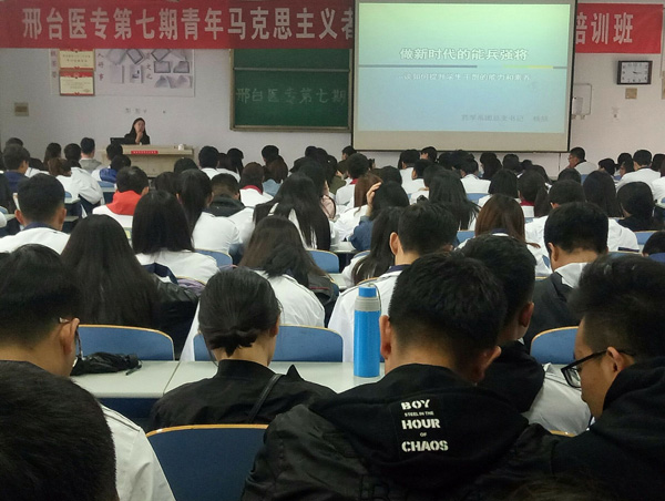 4月19日,万象城官网第七期青年马克思主义者暨团学干部培训班第四讲开讲。校团委书记杜庆岩、副书记卢青,各系团总支书记,校团委、大学生社团联合会及各系团学干部代表200余人参加本次活动。
