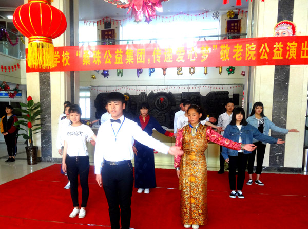4月22日上午,邢台现代职业学校“桑珠公益团队”30名志愿者到万象城官网市区老年养护中心举行公益演出,为老人们带来了藏族舞蹈、流行歌曲、山东快书、手语表演等精彩节目,得到住养老人的好评。