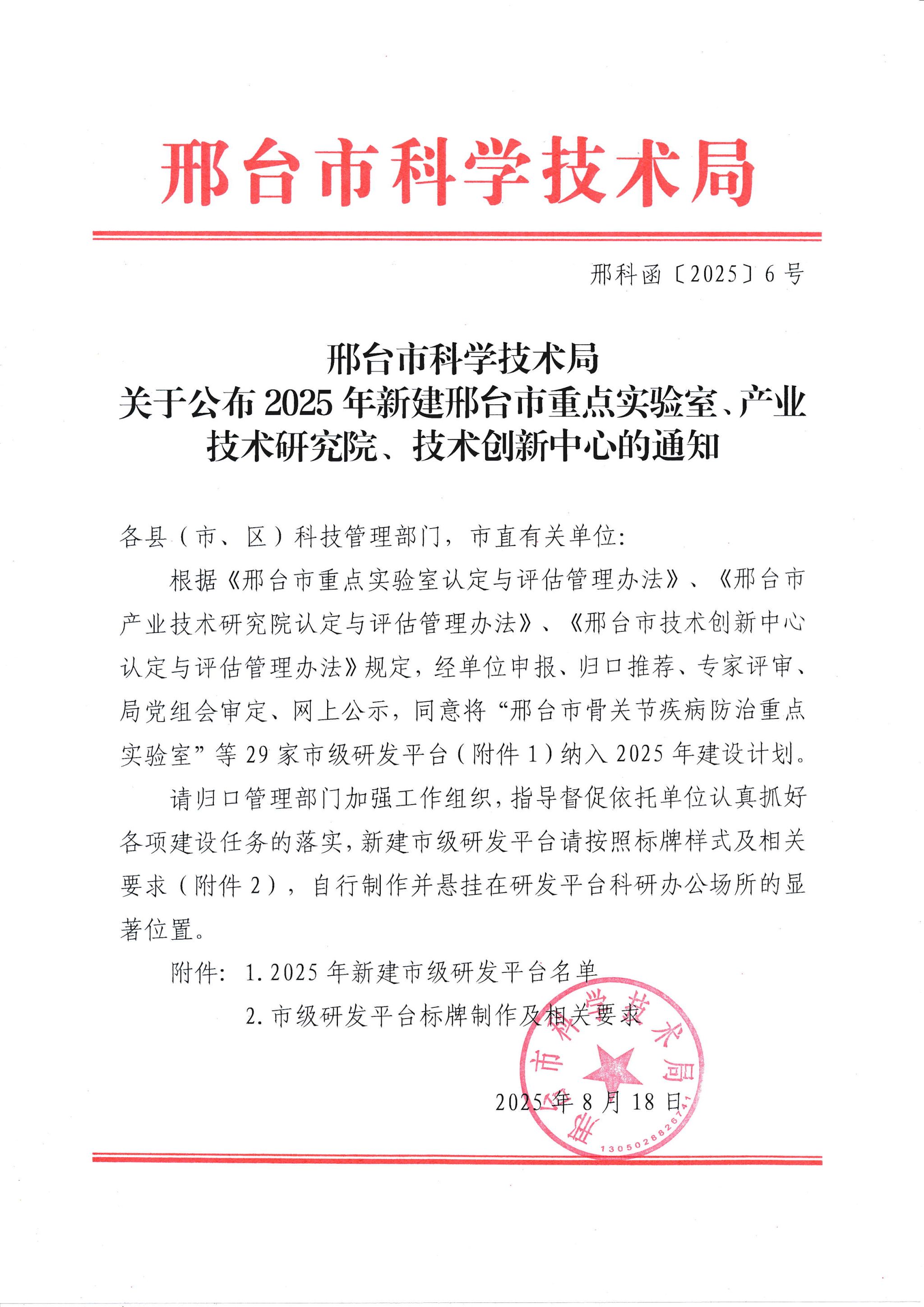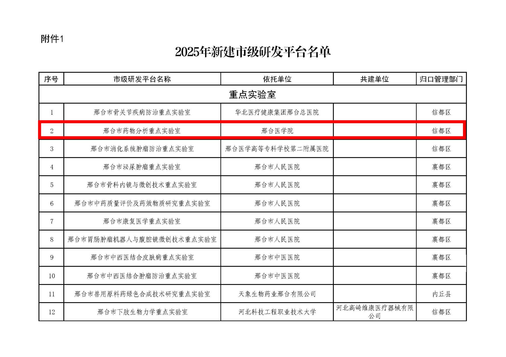 近日,邢台市科技局公布了2025年新建市级研发平台名单,万象城官网药学系“邢台市药物分析重点实验室”入选2025年度邢台市重点实验室,标志着学校在科研平台建设方面取得了新突破。