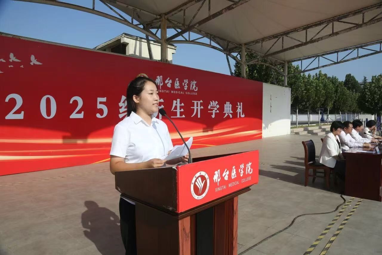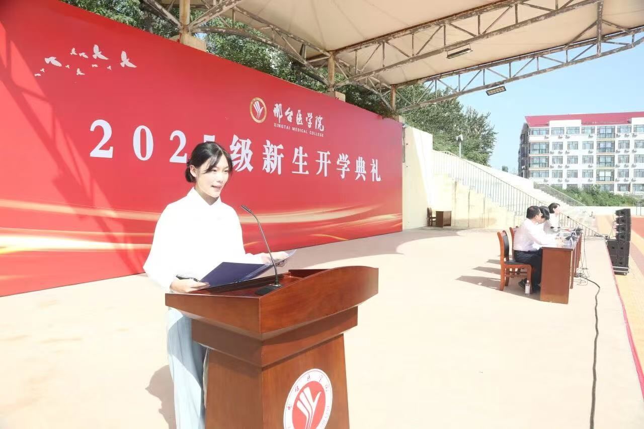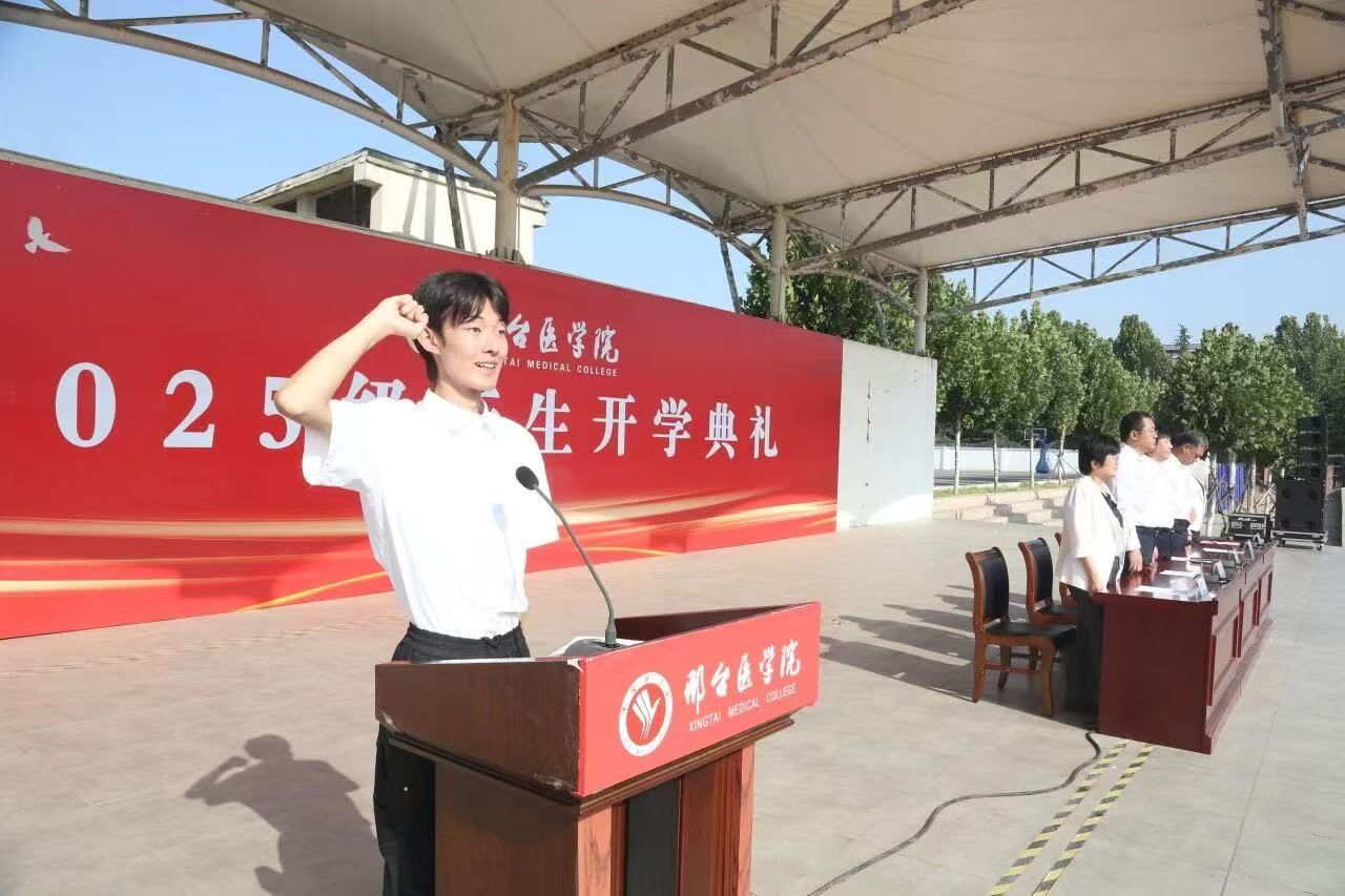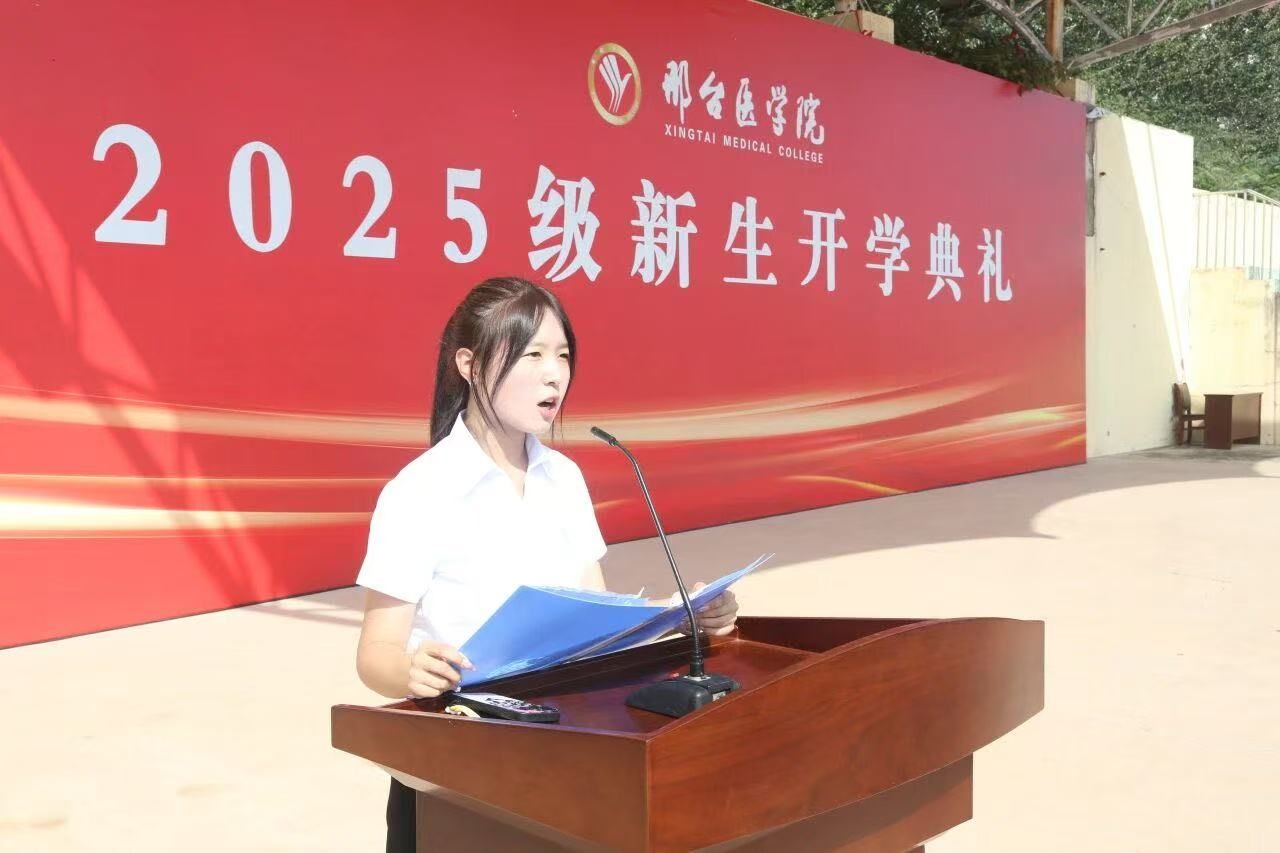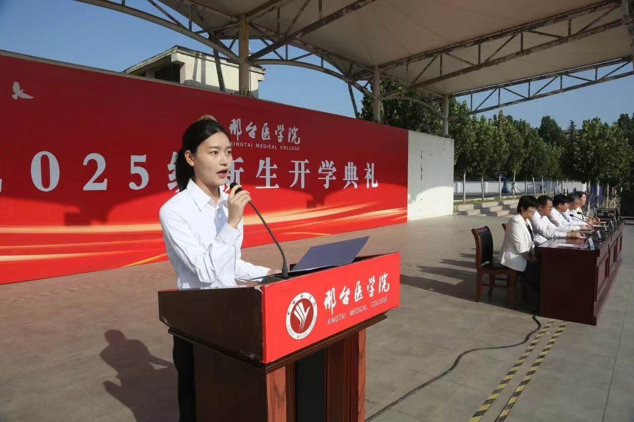 2025级口腔医学技术本科1班学生田笑宣和2025级康复治疗学本科1班学生赵嘉鑫作为新生代表发言。她们表示,将始终初心如炬,使命如山,立志将个人理想融入“健康中国”的时代浪潮,不辜负国家栽培、家人期望、老师培养,认真学习、刻苦钻研,积极实践,努力成长为“医术”“医德”兼优的高素质医学人才。