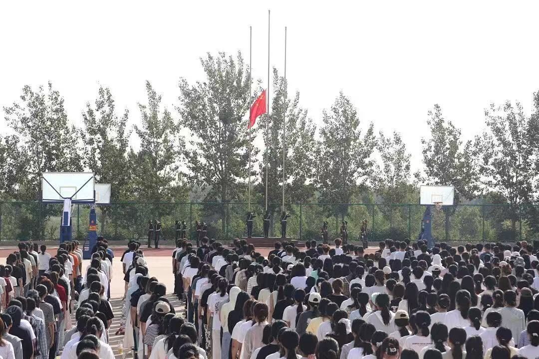在庄严的氛围中,国旗护卫队步伐铿锵、整齐入场。伴随着雄壮的《义勇军进行曲》,五星红旗冉冉升起,全体师生肃立并行注目礼,昂扬的歌声回荡在校园上空。
