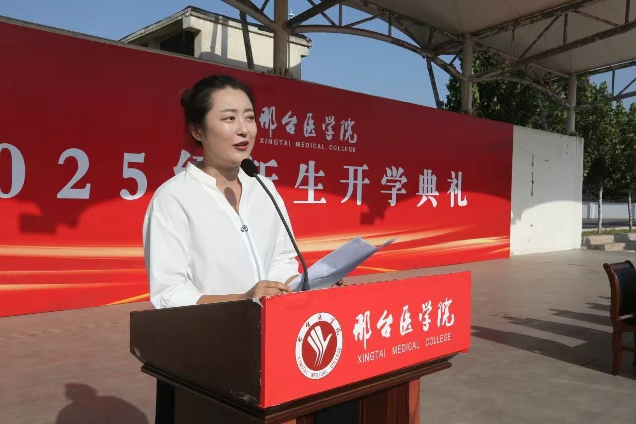口腔医学系教师王娜、护理系教师王松梅作为教师代表发言,向新同学致以热烈欢迎与美好祝愿,鼓励新生们秉承“崇德、砺志、精业、笃行”的校训,珍惜韶华、脚踏实地,以严谨的态度、扎实的学识筑牢医学根基,勇担守护人类健康的神圣使命。