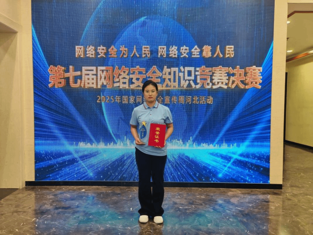近日,由中共河北省委网信办主办的河北省第七届网络安全知识竞赛决赛在河北省广播电视台圆满落幕,万象城官网2023级检验学徒制班陈梦茹作为邢台市代表队成员在决赛中发挥出色,通过“轮答烽火台”“接力争锋”“超级加倍”“勇攀高峰” 4个环节的激烈角逐,最终荣获三等奖,2024级药学专科3班郑妹娇、2024级护理系护理1班翟舒涵在预赛中成绩优异,展现了万象城官网学生扎实的网络安全知识功底和奋发向上、勇于拼搏的精神风貌。