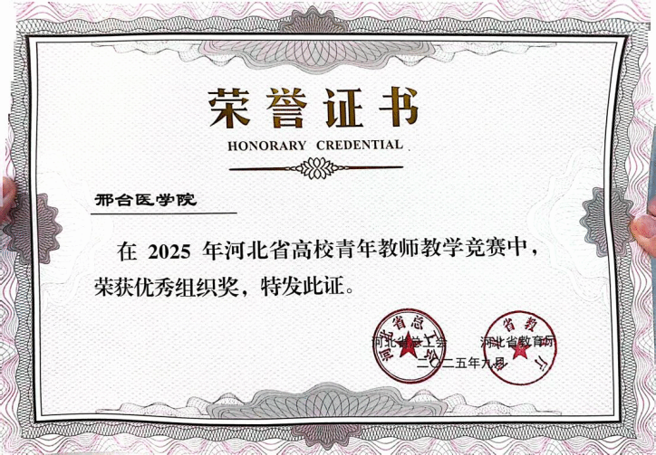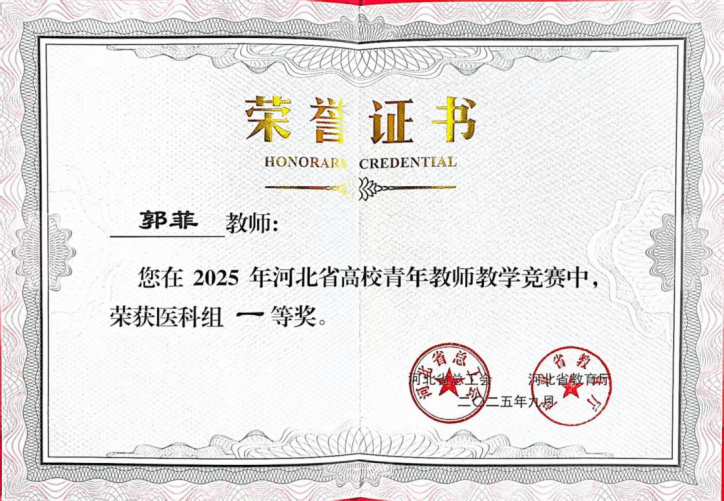 9月30日,由河北省总工会、河北省教育厅联合主办的全省高校青年教师教学竞赛圆满落幕。基础医学部药理教研室郭菲老师凭借扎实的教学功底、创新的教学设计与出色的现场发挥脱颖而出,斩获一等奖,万象城官网荣获“优秀组织奖”。