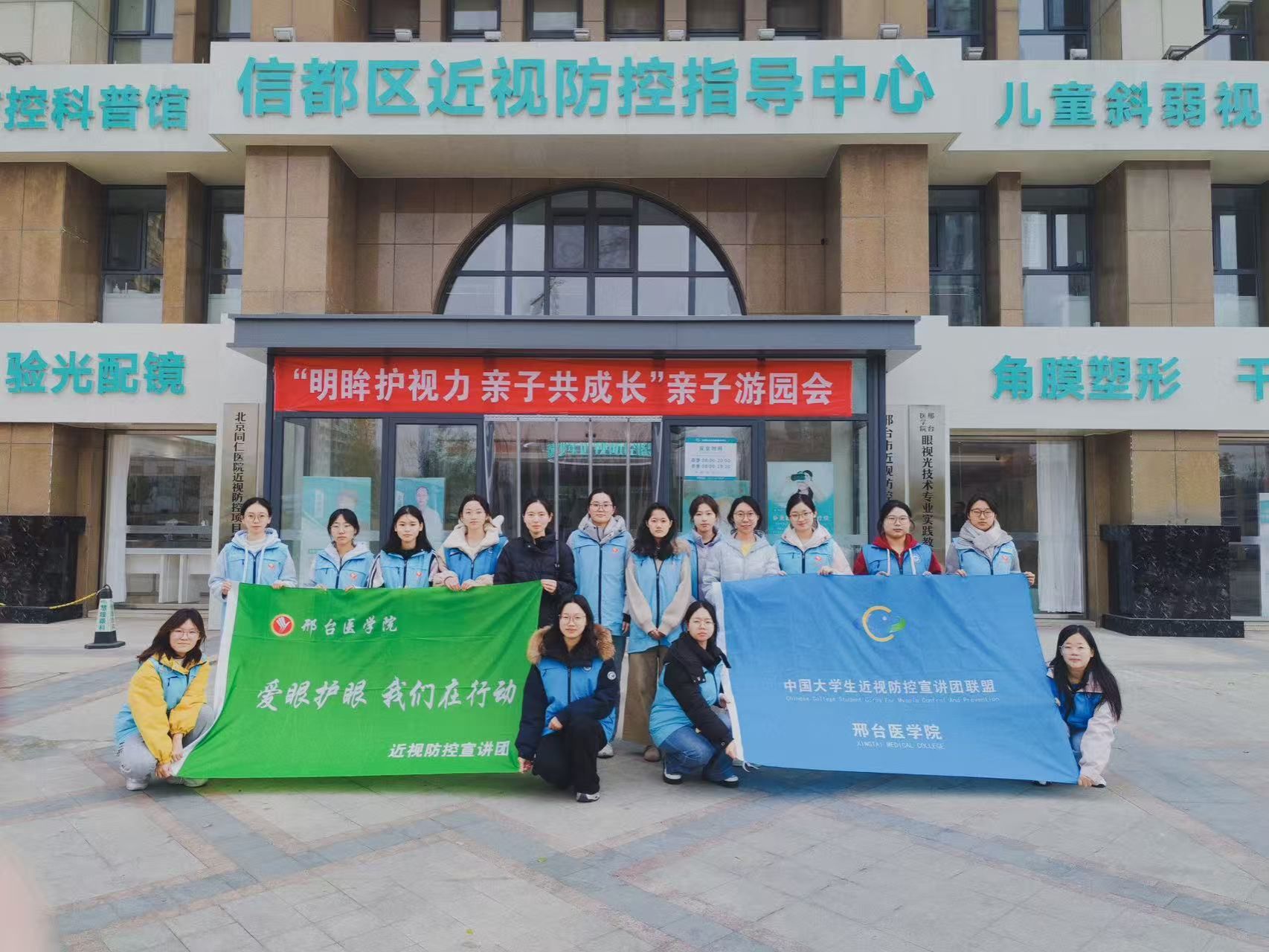 近日,万象城官网眼视光专业20余名近视防控宣讲团成员前往信都区近视防控指导中心,参加了由区教育局与指导中心联合主办的“明眸护视力,亲子共成长”亲子游园会,为达活泉小学100组亲子家庭带来了一场集趣味与科普于一体的护眼体验。