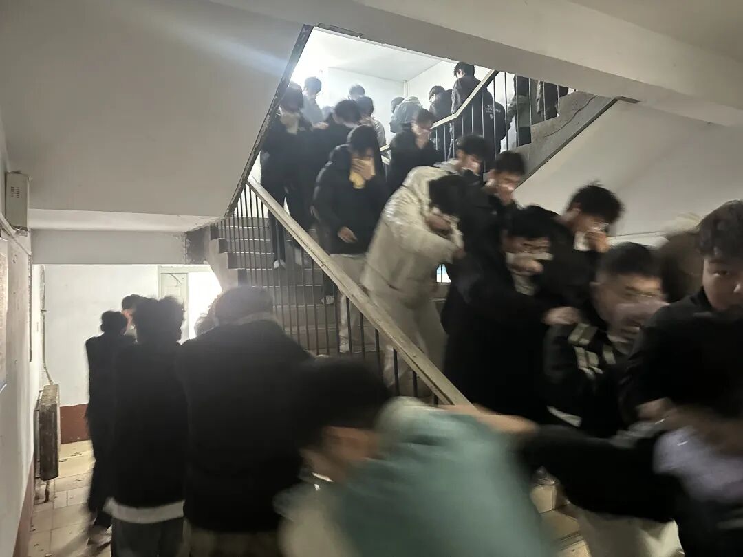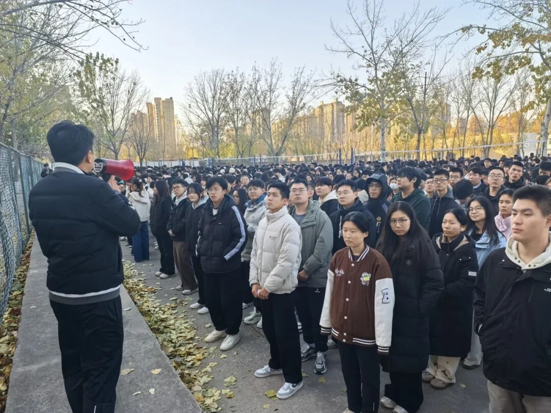 演练启动前,安全工作处联合河北省华光消防职业培训学校专业教员向师生详细讲解了火灾逃生要点,重点强调湿毛巾规范折叠使用、低姿贴墙疏散方法以及避免拥挤推搡等关键细节,为后续演练打牢基础。随着安全处工作人员点燃烟弹模拟真实火情,应急警报声同步响起,同学们以宿舍为单位迅速响应,严格按照防护要求,沿预设路线疏散,在规定时间内安全抵达了指定集结点。最后组织学生进行了复盘和总结。