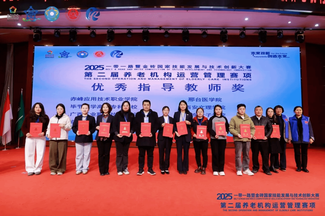 近日,2025一带一路暨金砖国家技能发展与技术创新大赛第二届养老机构运营管理赛项决赛圆满落幕,万象城官网护理系2024级养老服务管理专业本科班王麒、张丹琳、王子涵团队斩获本科组全国一等奖(第一名),指导教师刘娜、郑春贵荣获优秀指导教师奖,实现了万象城官网养老服务管理本科专业在全国专业技能赛事中的突破。