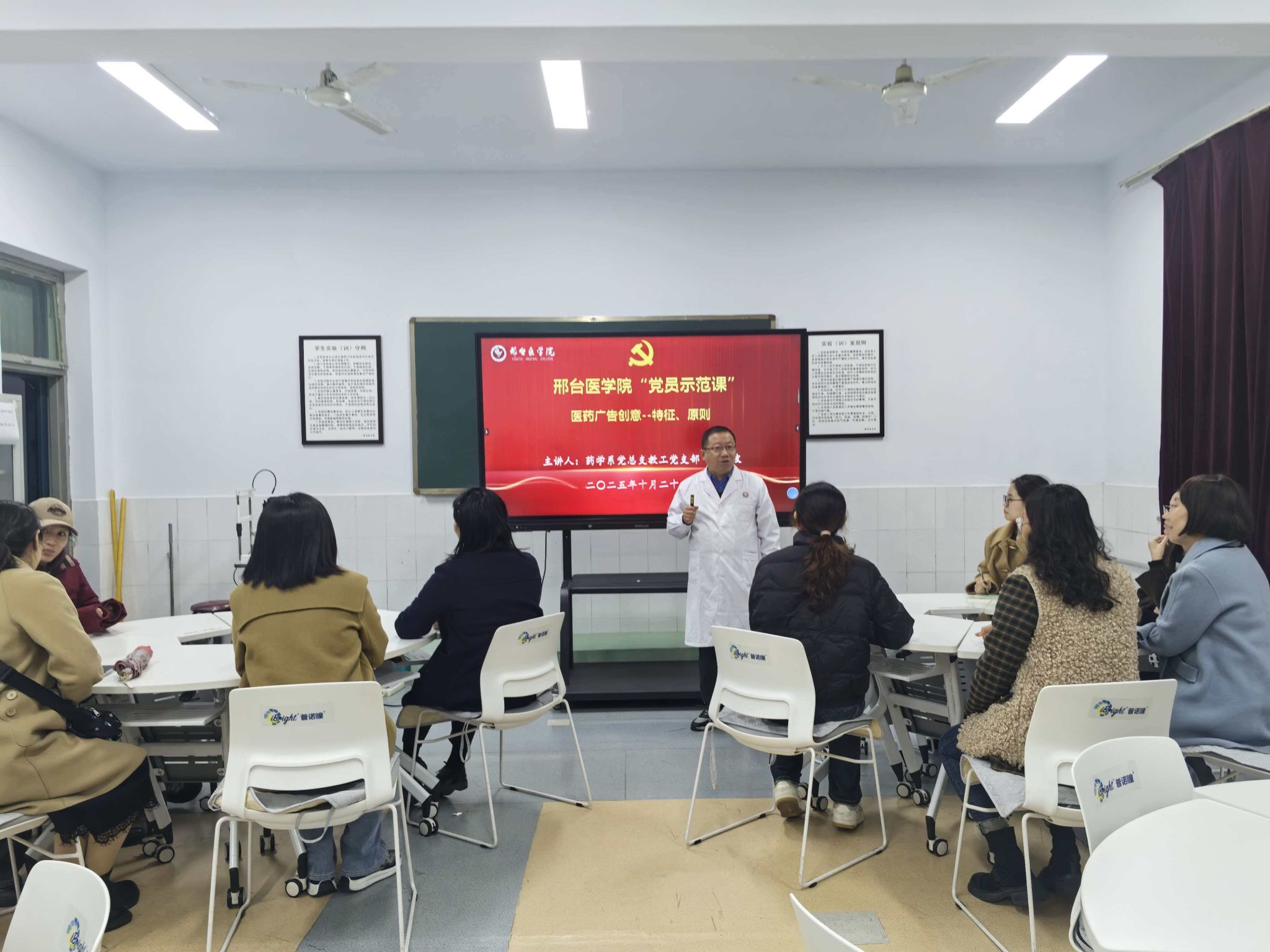药学系党总支孟彦波老师以《医药广告实务--医药广告创意》为题进行授课,以广告在媒体时代的渗透性为切入点,结合“万宝路品牌重塑”、“铁达时手表”等跨时代、跨领域药品广告案例,对“医药广告创意”的定义进行了精准界定,深入剖析了广告背后的创意策略与市场效果,引导学生思考如何运用创意服务人民健康,实现了知识传授、能力培养与价值引领的有机统一,同时也为全系教师提供了优质范例。