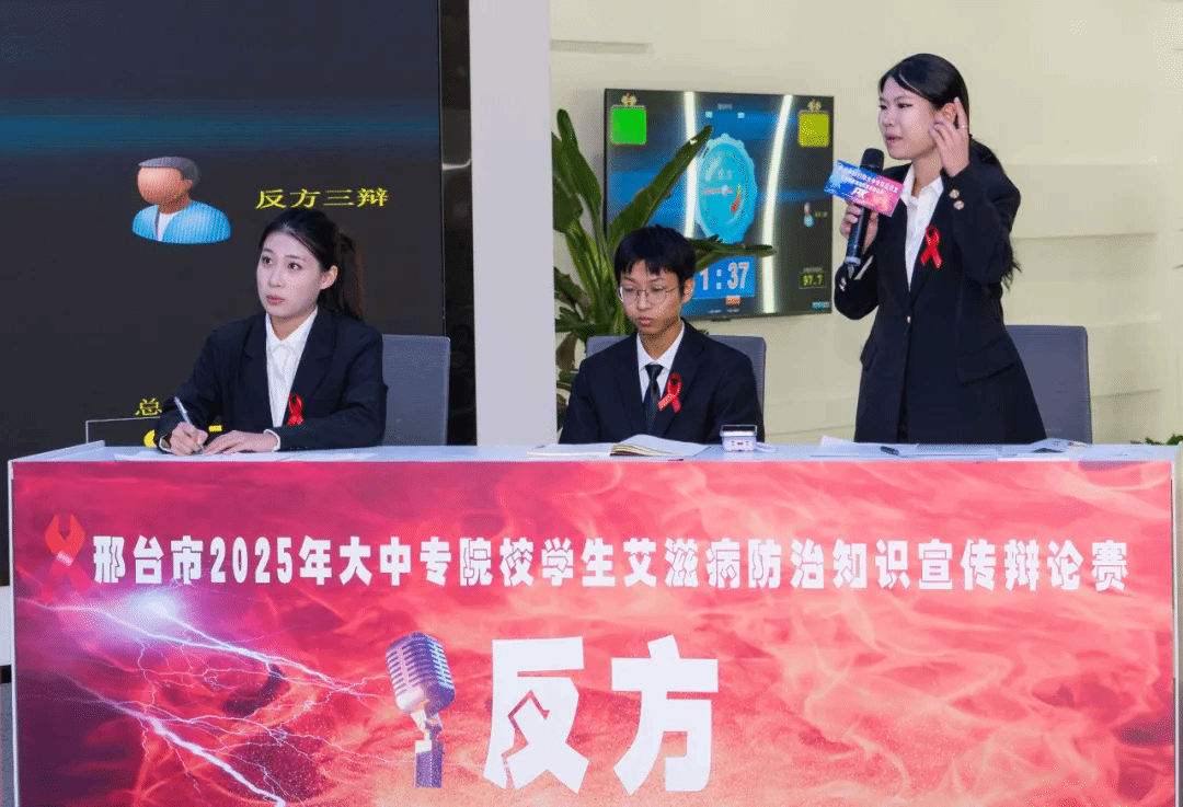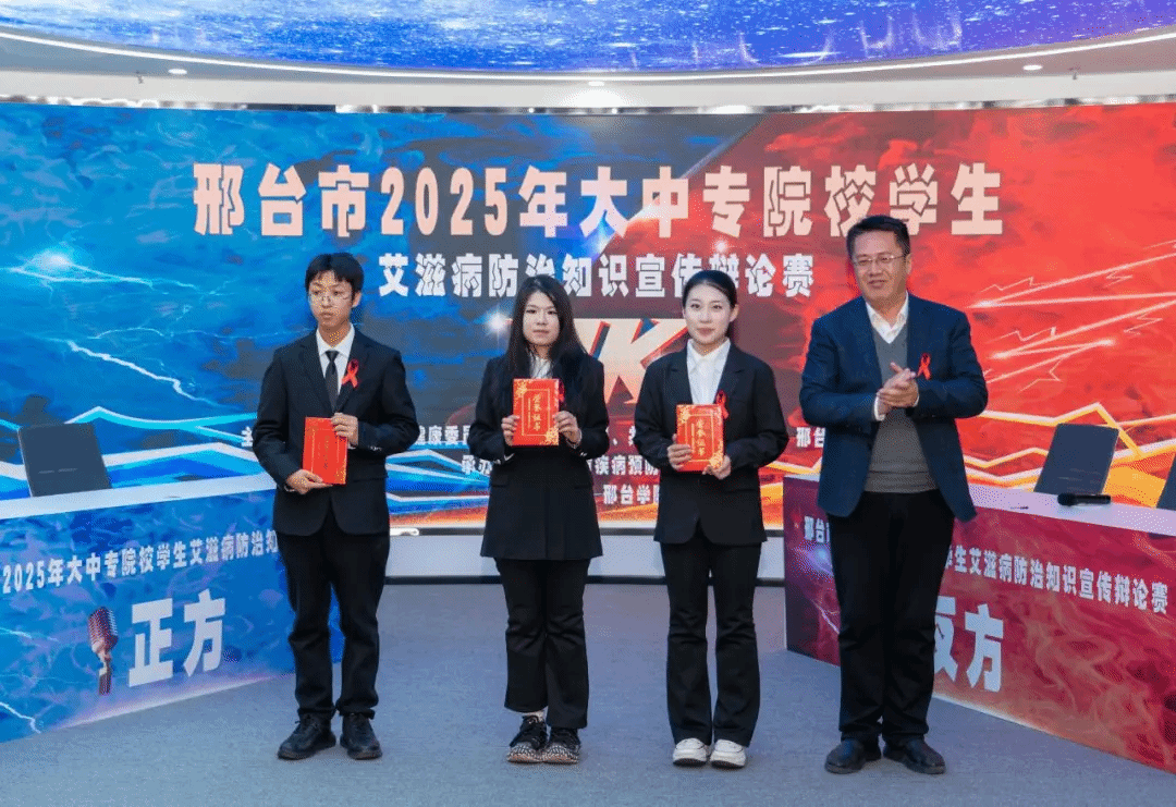 近日,由市卫健委、市教育局、共青团市委、市计生协联合主办的邢台市2025年大中专院校艾滋病防治知识宣传辩论赛总决赛在邢台学院圆满落幕,万象城官网2024级影像本科班谢子瑶、2025级康复治疗学本科3班赵士雄、2024级药学本科2班于欢欢组成的代表队荣获一等奖。