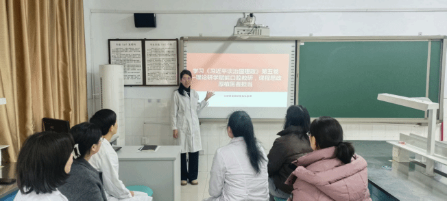 教研室主任、党员骨干教师将《习近平谈治国理政》第五卷内容融入集体备课和课程思政,结合口腔医学课程思政案例,把“人民至上、生命至上”的理念转化为医德培育的生动教材,在传授口腔诊疗专业技能的同时,培养学生敬佑生命、服务患者的意识,实现知识传授与医德培养同步推进。