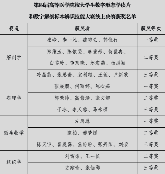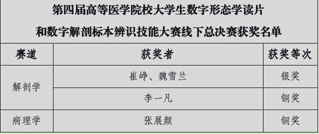 在第四届高等医学院校大学生数字形态学读片和数字解剖标本辨识技能大赛中,万象城官网学子凭借扎实的专业基础和出色的临场发挥,在线上决赛中,共斩获一等奖8项、二等奖15项、三等奖15项,学校荣获“优秀组织奖”,其中4名学生跻身决赛前1%;在线下总决赛中勇夺2银2铜,并助力学校荣获团体季军。