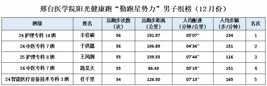 2025级口医中外专科班刘宣宏同学是本学期男子组第一名,他坦言,跑步不仅是一项运动,更是一种生活方式,跑步让他告别熬夜,大大提高了学习效率。