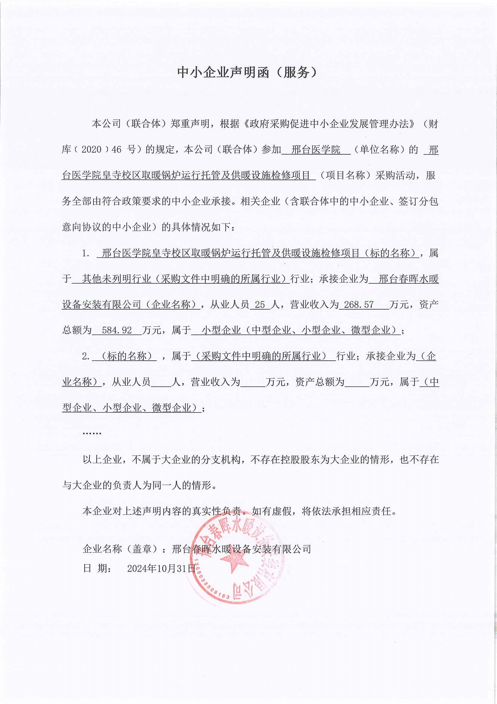 中小企业声明函