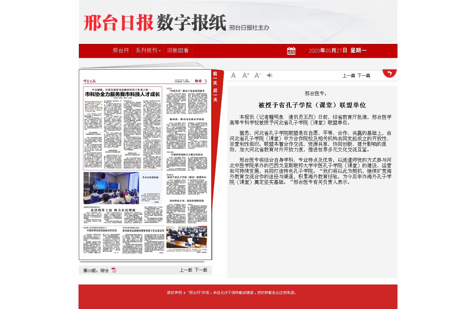 上一条:邢台日报报道:省职业院校技能大赛(高职)护理技能比赛在邢举行