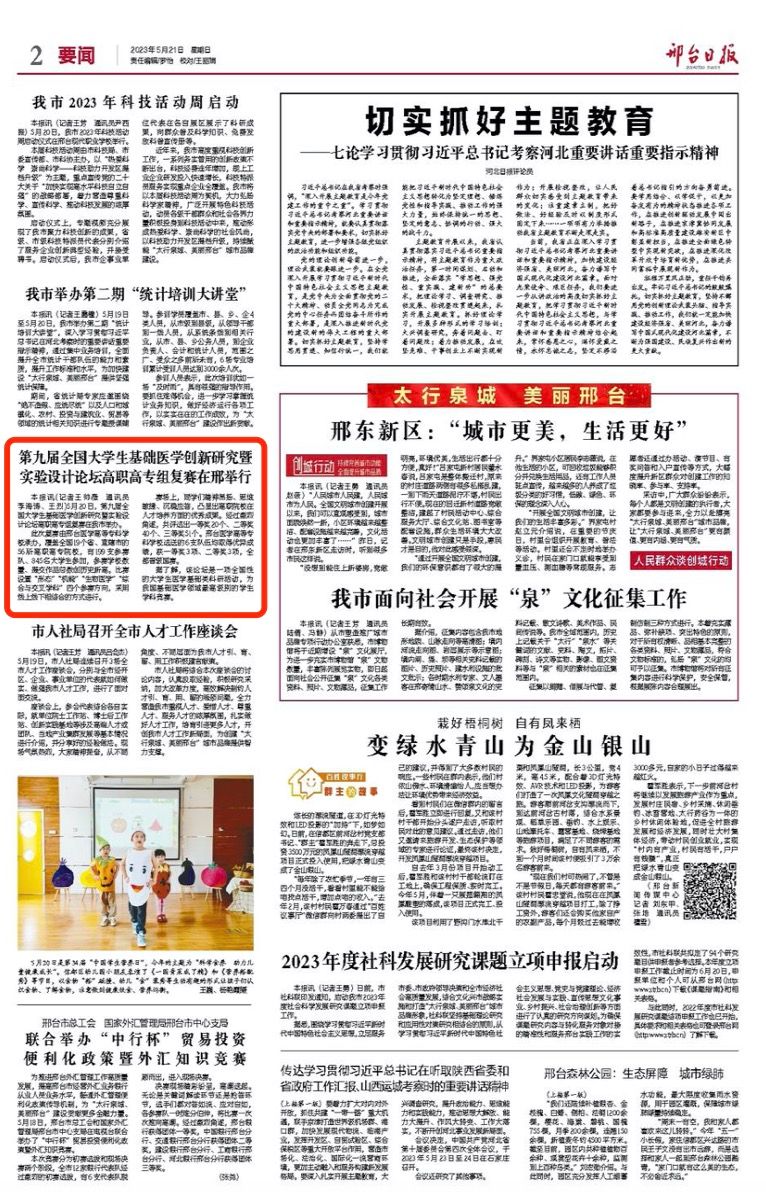 邢台日报报道:第九届全国大学生基础医学创新研究暨实验设计论坛高职高专组复赛在邢举行