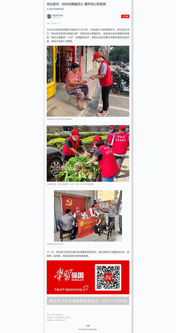 下一条:文明邢台报道:【新时代文明实践】邢台医专与广宗结对开展新时代文明实践活动暨理论宣讲活动