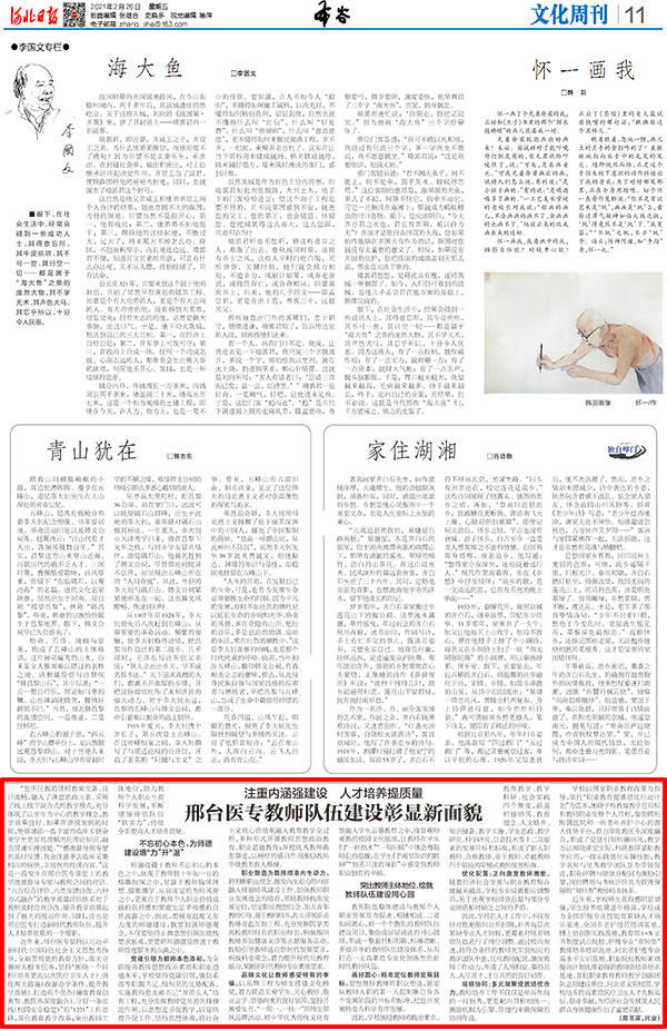 近年来,万象城官网坚持以习近平新时代中国特色社会主义思想为指导,全面贯彻党的教育方针,落实立德树人根本任务,紧紧围绕“1221”工作思路,深化教育教学改革;突出教师主体地位,助力教师个人职业生涯科学发展,不断增强师资队伍“软实力”,持续全面提高人才培养质量,取得了可喜成绩。2月26日,《河北日报》以“注重内涵强建设、人才培养提质量——邢台医专教师队伍建设彰显新面貌”为题进行了宣传报道。