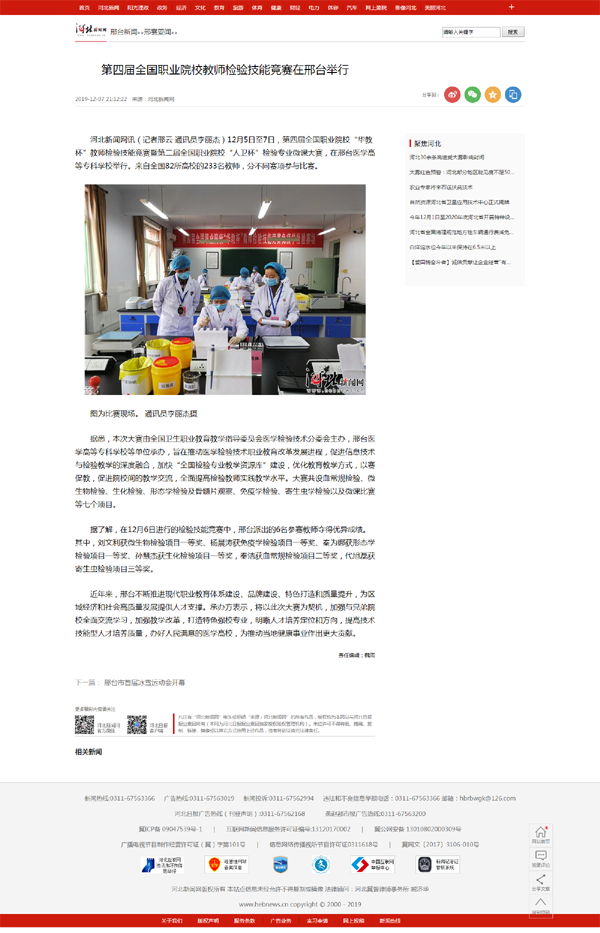 上一条:河北教育网报道“第四届全国职业院校教师检验技能竞赛在邢台举行”