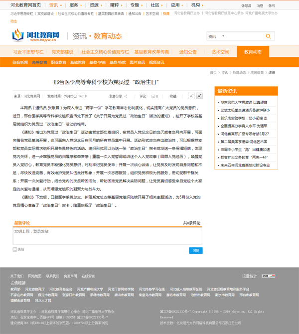 上一条:河北教育网报道“邢台医专召开‘不忘初心、牢记使命’主题教育动员部署会议”