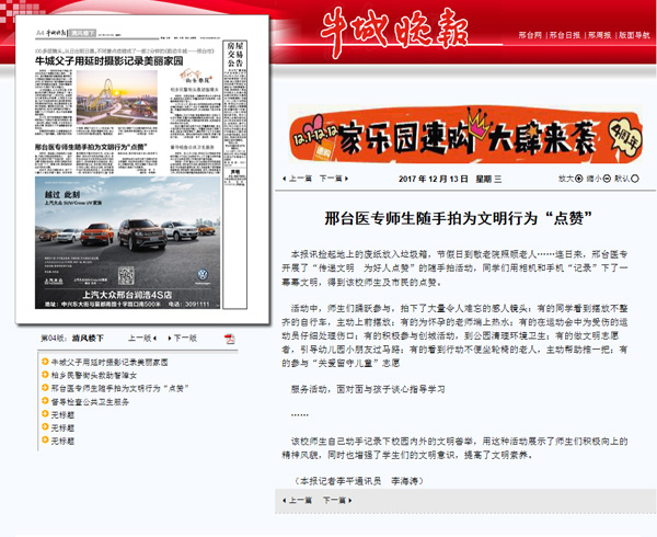 上一条:河北德育网报道“邢台医专开展迎春节“四个一”志愿服务活动”
